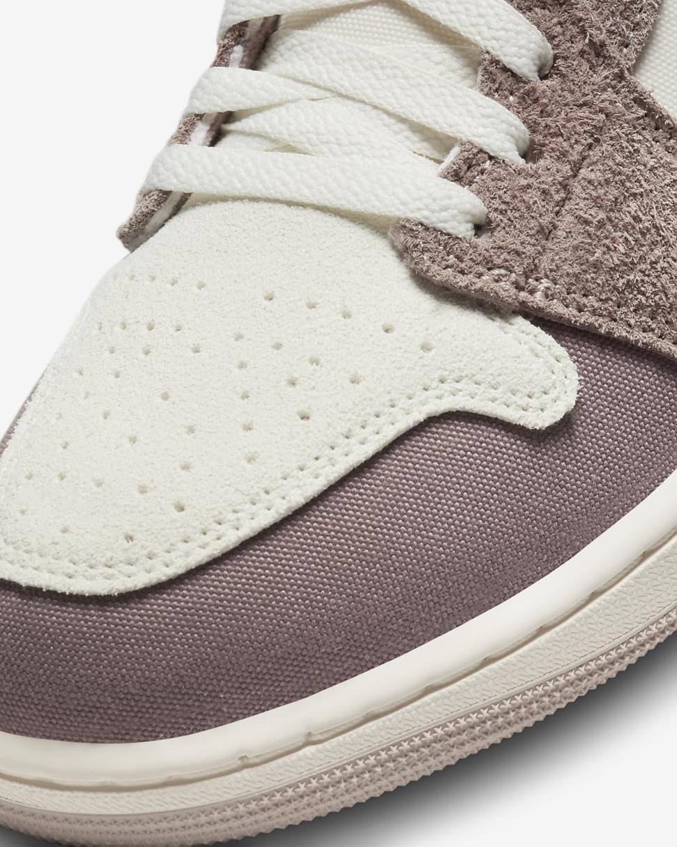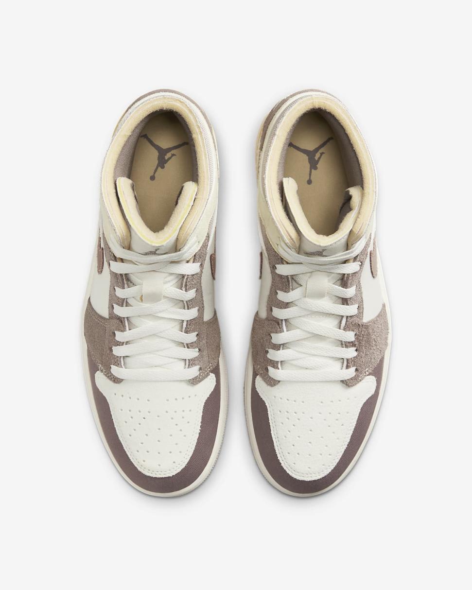 Turn style on its head with this crafted take on the Air Jordan 1 Mid. Its "inside out"-inspired construction, including unique layering and exposed foam accents, ups the ante on this timeless Jordan Brand silhouette. Details like the deco stitching on the Swoosh add coveted appeal, while the unexpected shading, rich mixture of materials, and aged midsole aesthetic give this release an artisan finish.