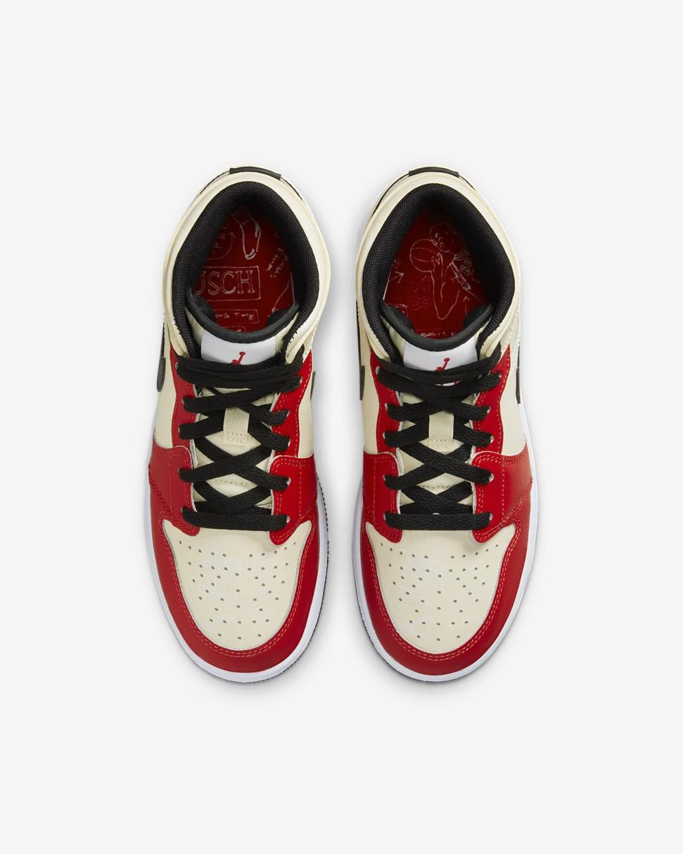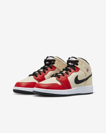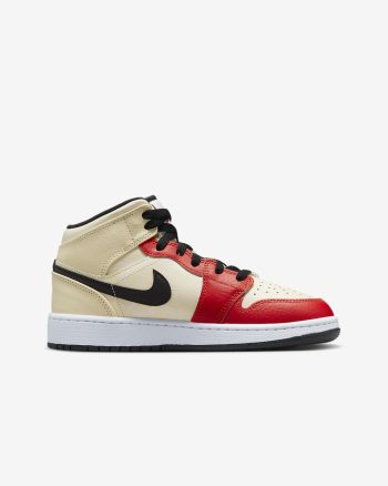 Air Jordan 1 Mid SS Muslin/Black/White/Chile Red | Kids Nike Jordan