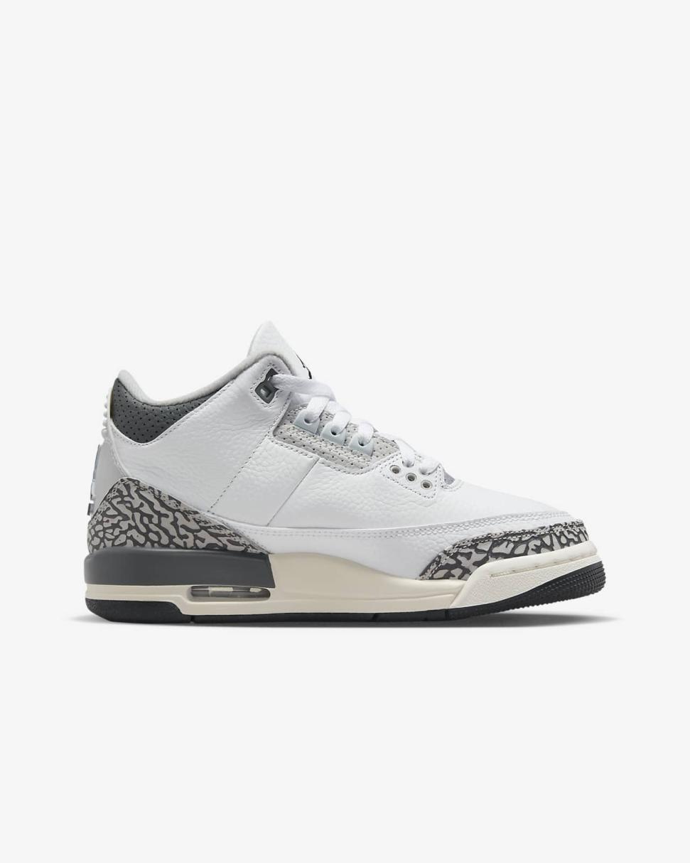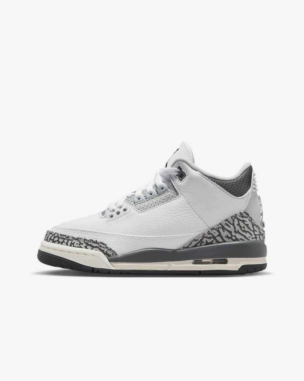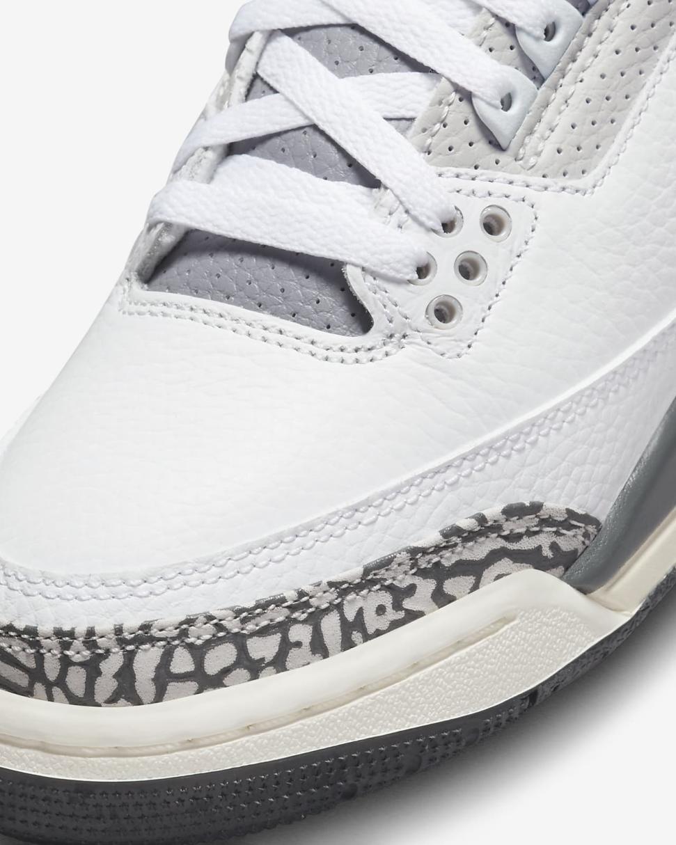 Clean and supreme, the AJ3 returns in all its classic style and grace. Quality leather in the upper—with that luxurious elephant print texture—combines with visible Nike Air cushioning in the sole to make an everyday icon.