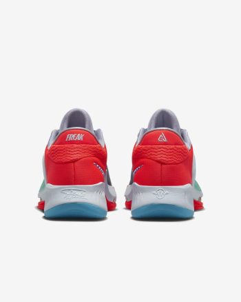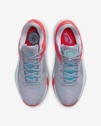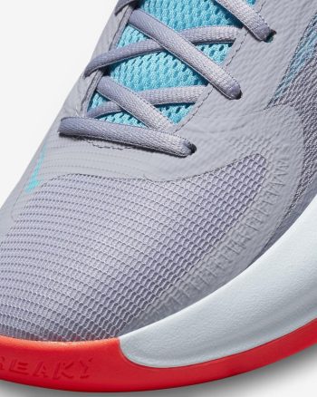 - Molded backwards Swoosh logo is a signature of Giannis’ Freak shoes.
