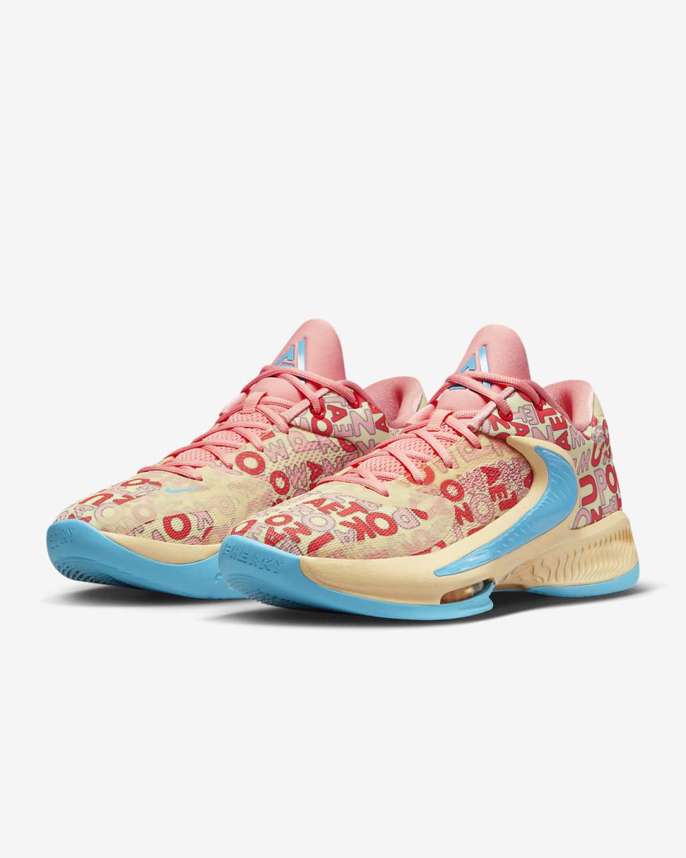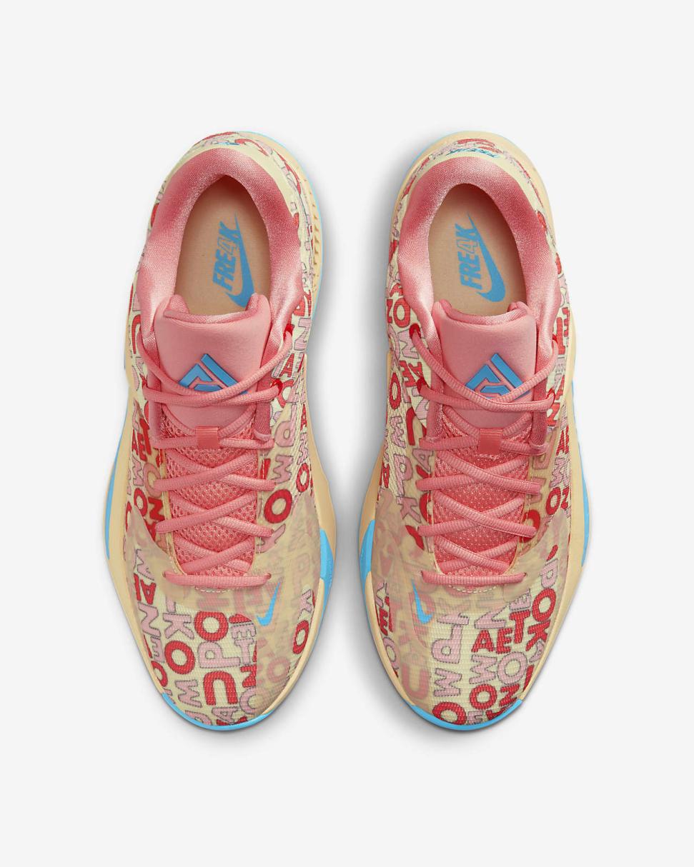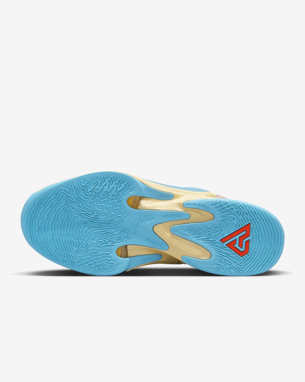 - Molded backwards Swoosh logo is a signature of Giannis’ Freak shoes.