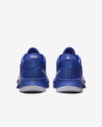 - Molded backwards Swoosh logo is a signature of Giannis’ Freak shoes.