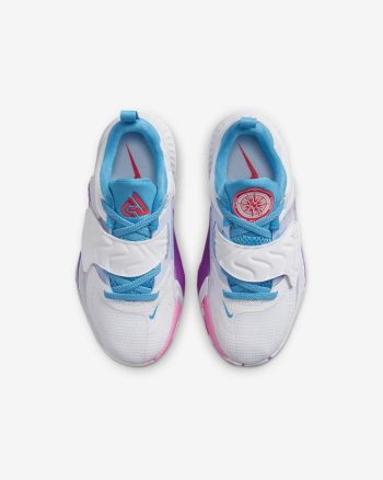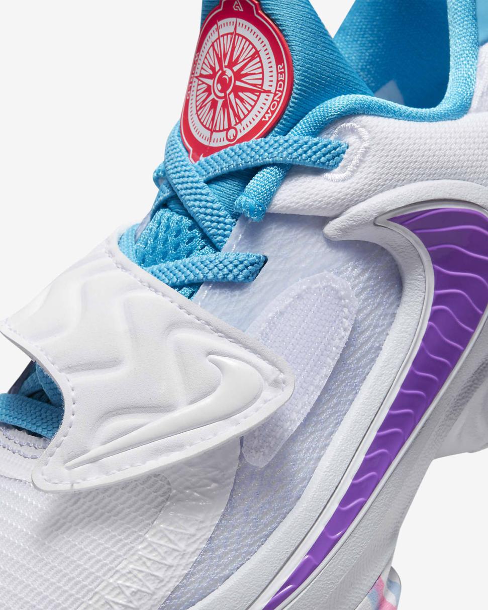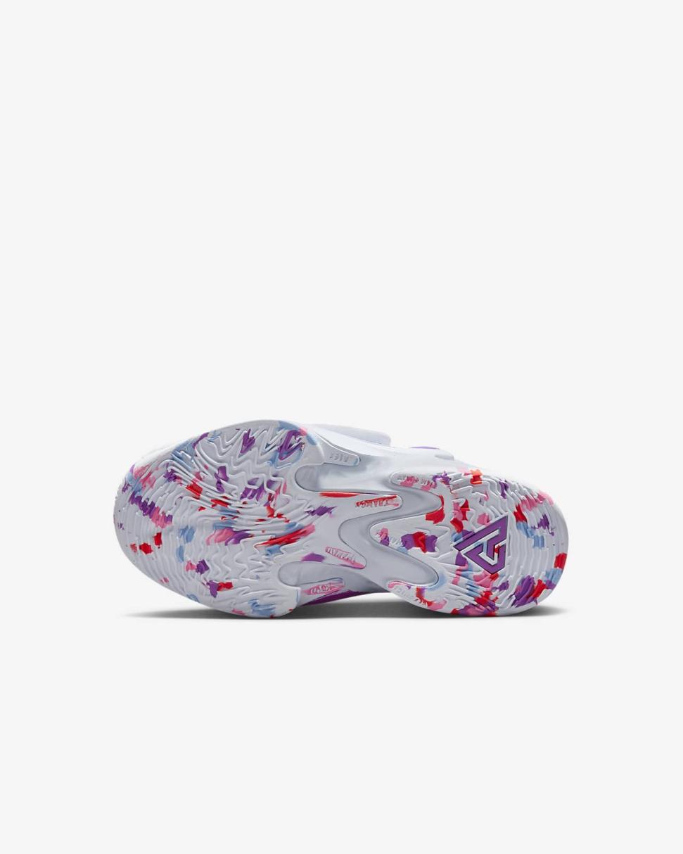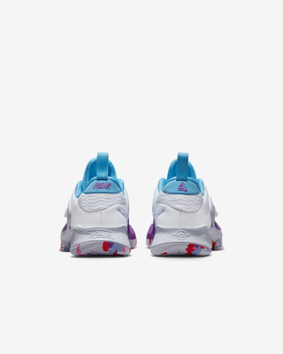 Molded backwards Swoosh is a signature of Giannis’ Freak shoes. Plus, the sole’s traction pattern is data-driven from the pressure points on Giannis’ feet and taken down to kids sizing.