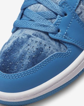 - Sky blue leather and denim in the upper add durability.