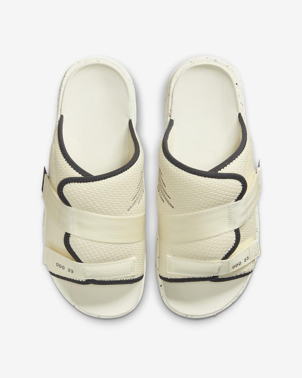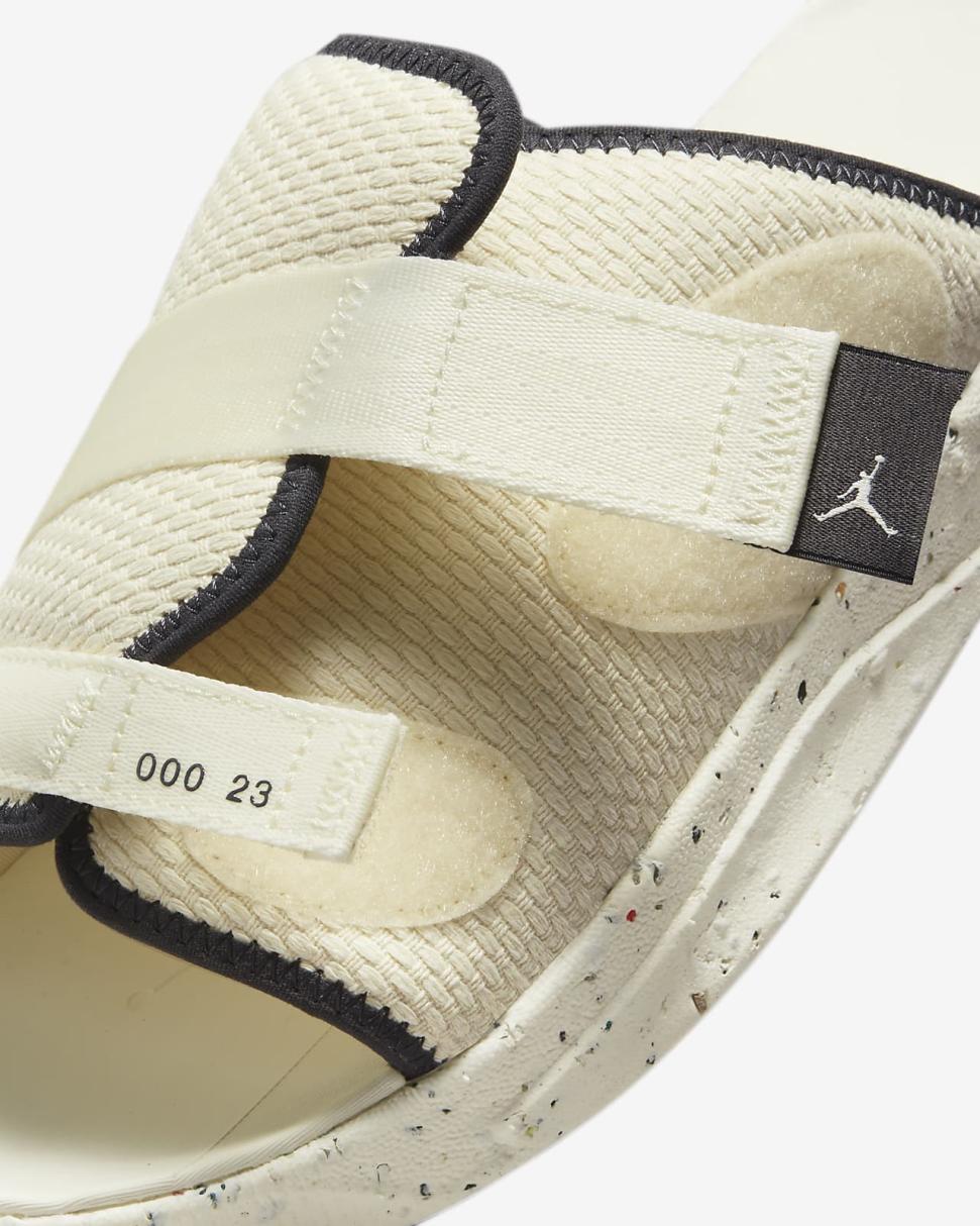 Walk the talk in the Jordan Crater Slide, a design created with a total of at least 12% recycled content. The open-toed strap is made with some recycled content, and the footbed is made from a combination of Nike Grind rubber and soft foam.