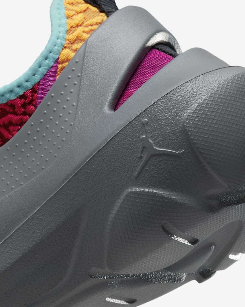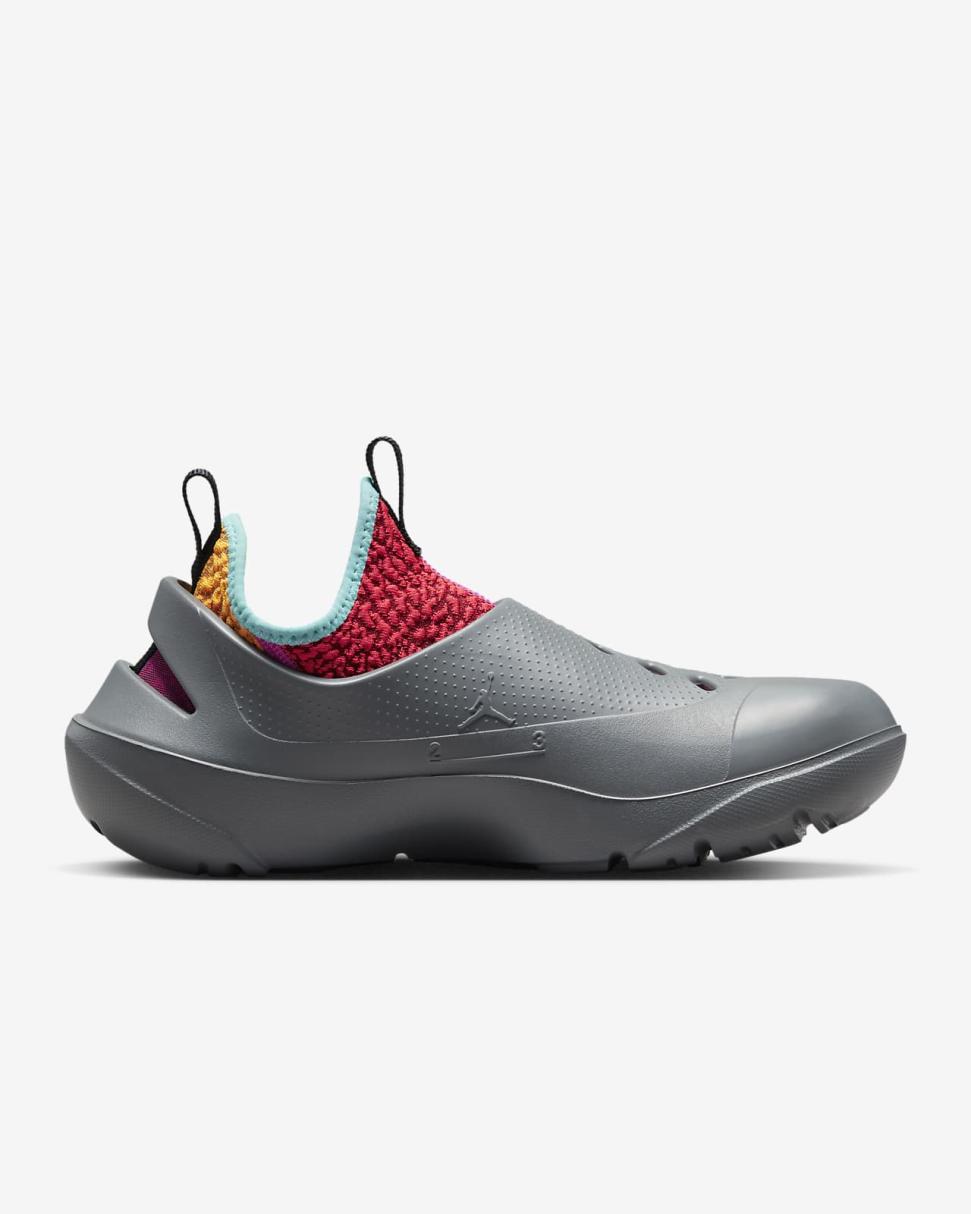 The shell is composed of durable foam for a long (and comfortable) life. Indentations on the outsole give you the grip you need, while ventilation holes keep your soles feeling fresh. Jumpman and 23 Engineered logos are stamped right into the foam.