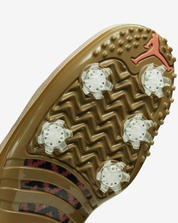 Hybrid outsole combines integrated traction with 7 removable spikes for optimal gripping power. The grooves and ridges surrounding the spikes are inspired by the outsole on the original AJ XII.