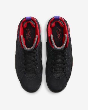 - Upper is a mix of AJ6 and AJ7 elements: the tongue top and modified overlay reference the AJ6 while the semi-bootie lining homages the AJ7.