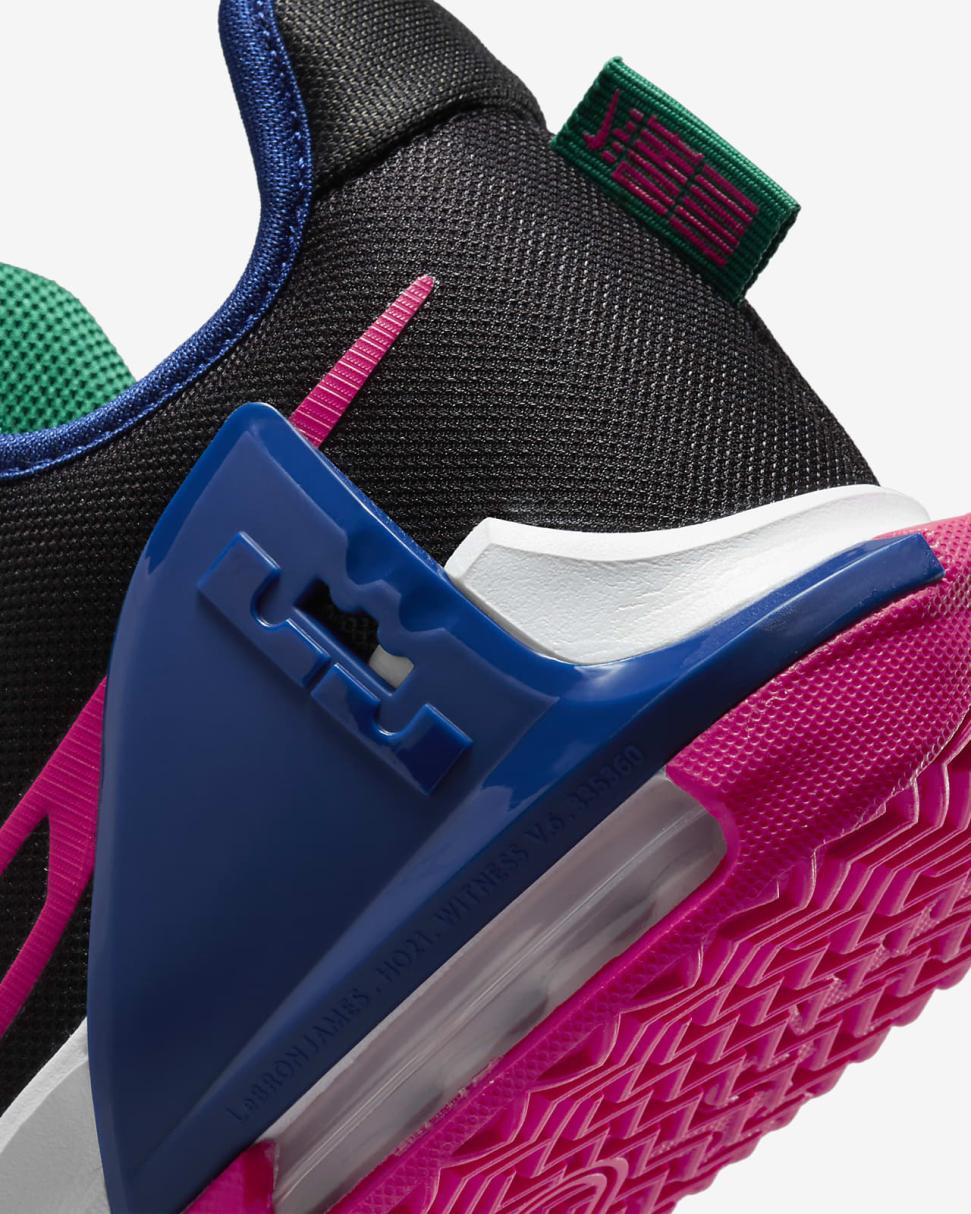 For this iteration of the LeBron Witness, we swapped out Zoom Air for visible Max Air cushioning—LeBron's favorite—to help dissipate impact forces and provide a responsive sensation. The lightweight, reinforced mesh upper keeps you contained all around, from the webbing that harnesses your forefoot to the external molded pieces that lock in your heel.