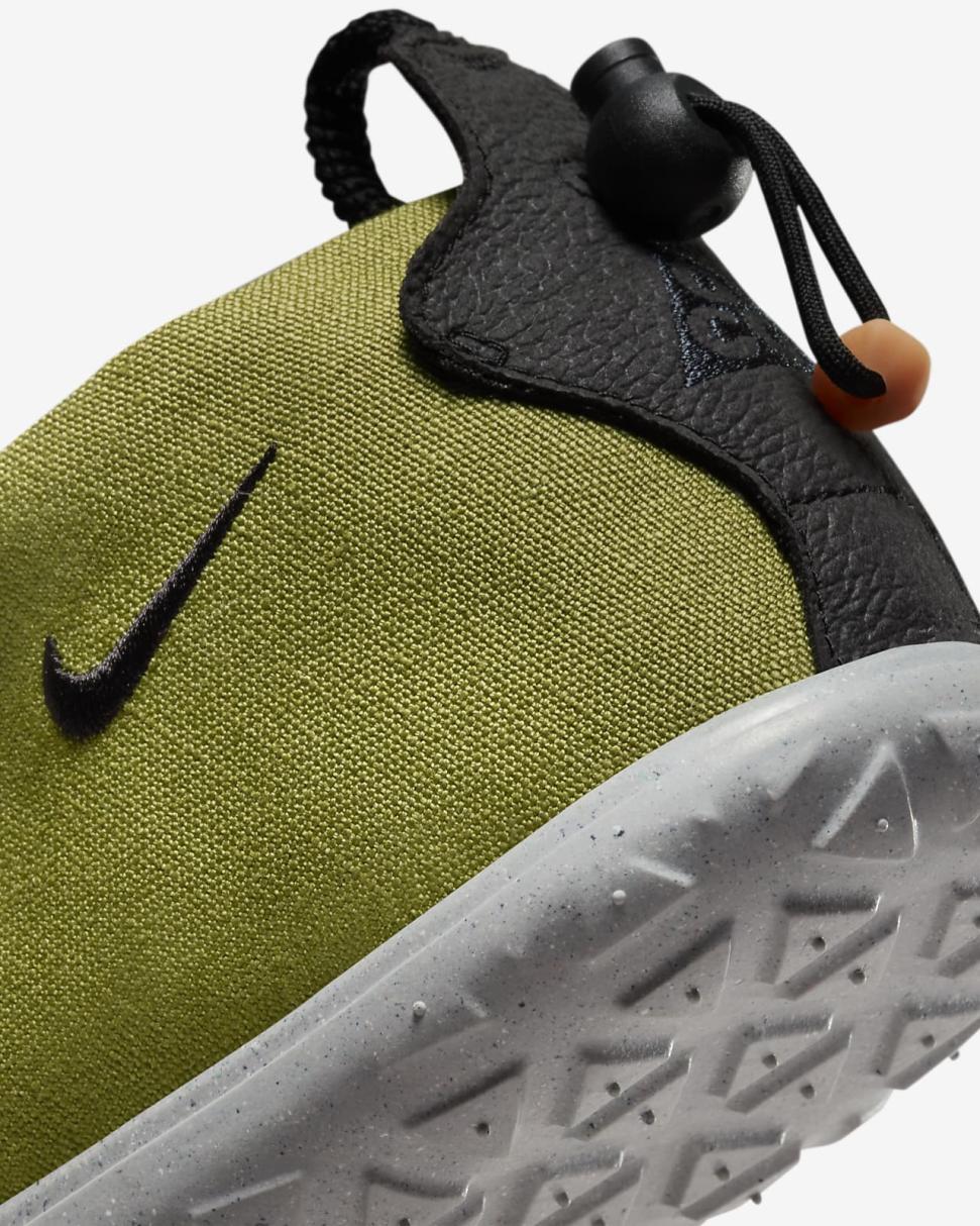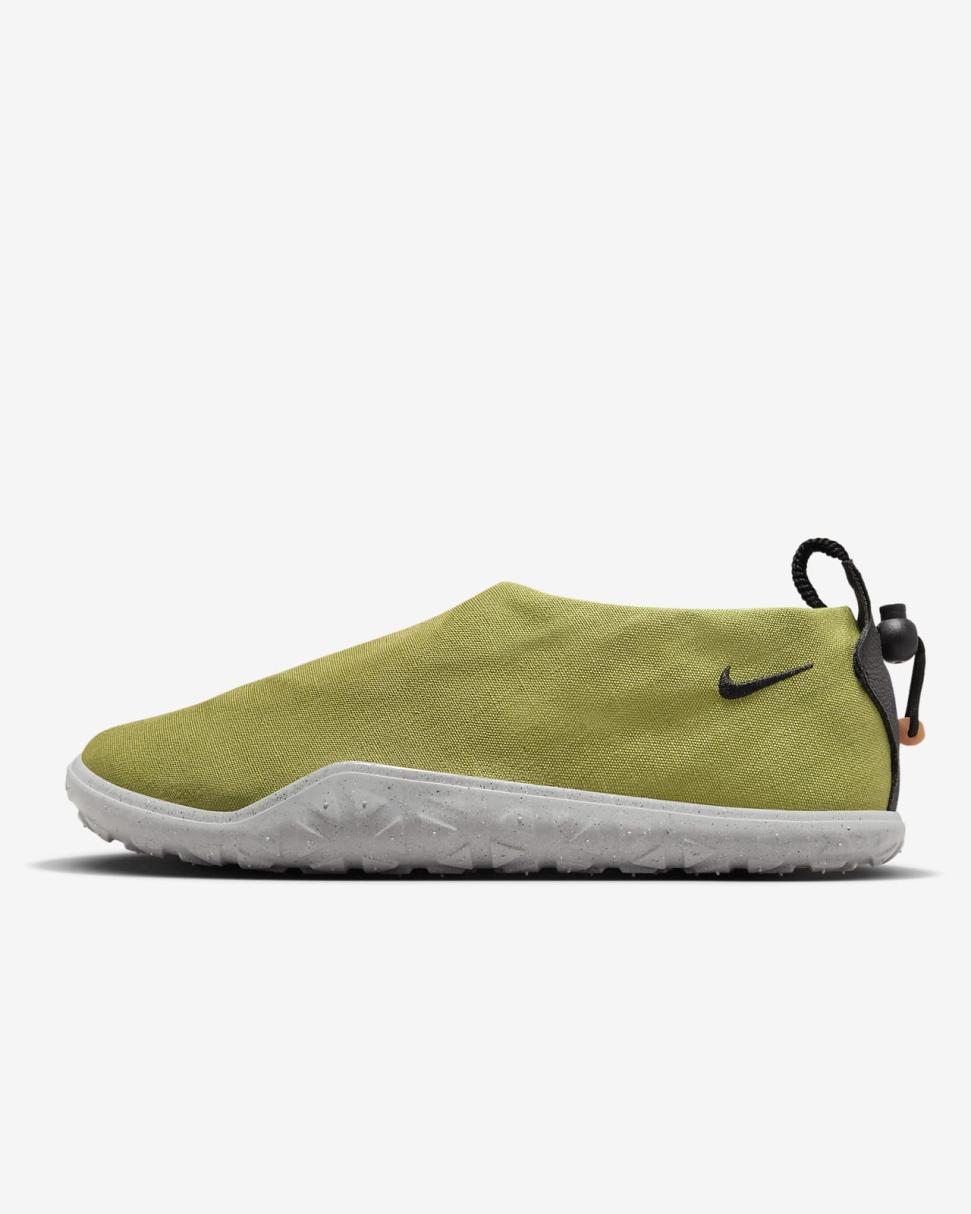Find the comfort of home after your next adventure in the Nike ACG Moc. Bringing a relaxed, cozy feel to even the most rugged campsite, its slip-on design and plush foam midsole pair perfectly with a hot drink and wild vistas. The insulated upper helps keep your feet warm, while the custom tread pattern delivers durable traction just in case that evening stroll calls your name.