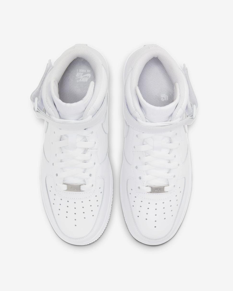 The Air Force 1 '07 Mid is everything you love best: crisp overlays, bold accents and the perfect amount of flash to let you shine. The padded, mid-height collar with classic hook-and-loop closure mixes style versatility with heritage b-ball comfort while perforations on the toe keep you cool.