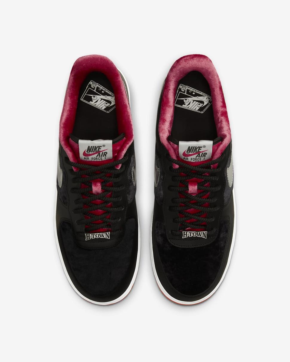 Meant to be seen. Meant to be heard. Welcome yourself to H-Town. Honoring the city's rise onto the hip-hop scene through the '90s and early aughts, it brings coveted slab (slow, loud and bangin') car allure to the legendary design. Inspired by the chrome finishes and neon trunk signage of the window-shaking cars, it'll turn heads quicker than a high-gloss paint job. Tricked out velvet accents showcase your charisma. Graphics celebrate the Lone Star State's vibrant music culture. And for extra heat, we've added a special dubrae and premium tongue label. Step on in—the party's just getting started.