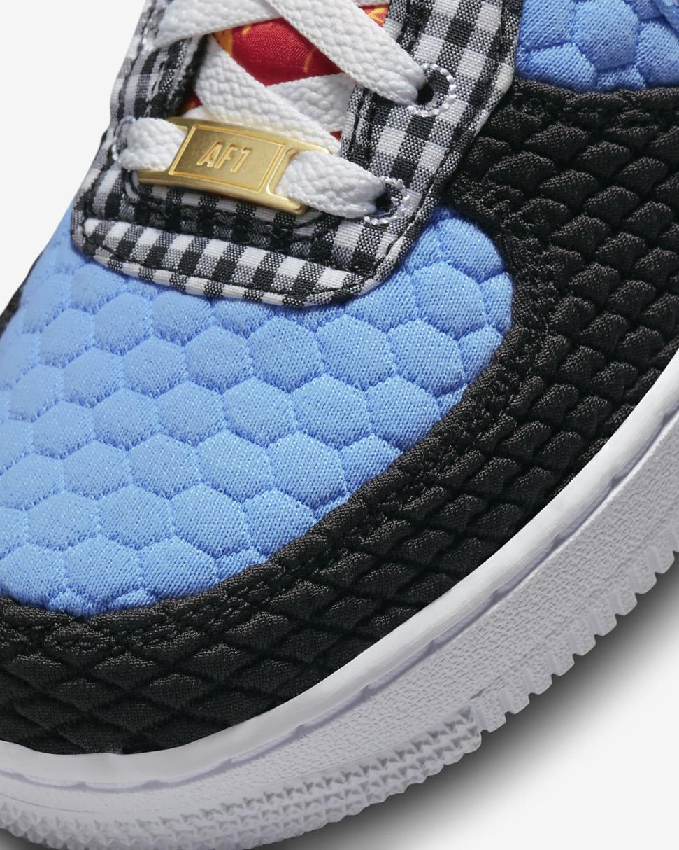 Classic comfort with a kick. The radiance lives on in a b-ball original that highlights everything you love about the AF1 franchise: bold colors, slam-dunk style and Nike Air cushioning. This edition features a cozy textured upper and fun patterns to help you enjoy your every step. Fun stitched details and metallic gold dubraes add a sense of playfulness while cozy knit fabric adds warmth to chilly nights.
