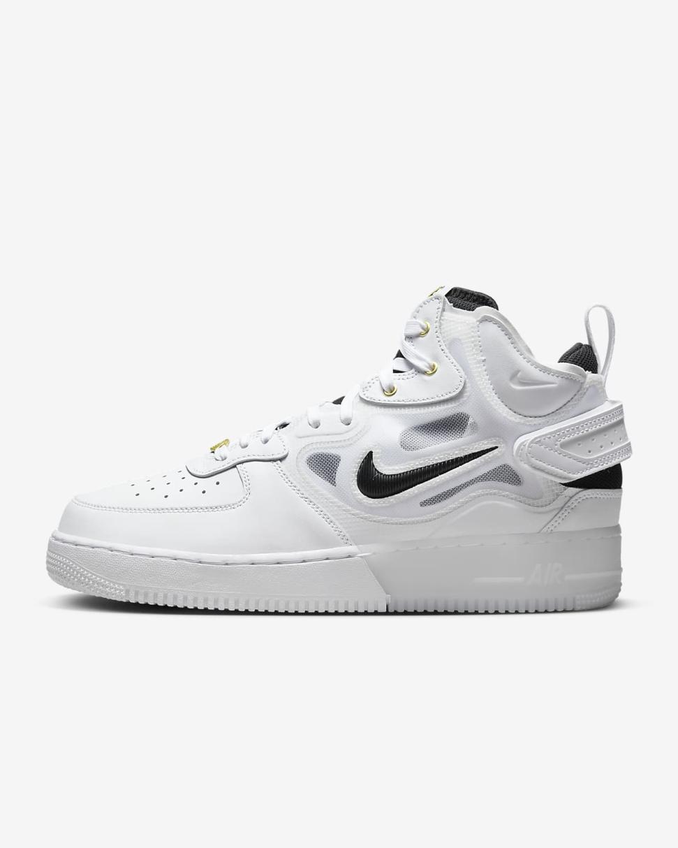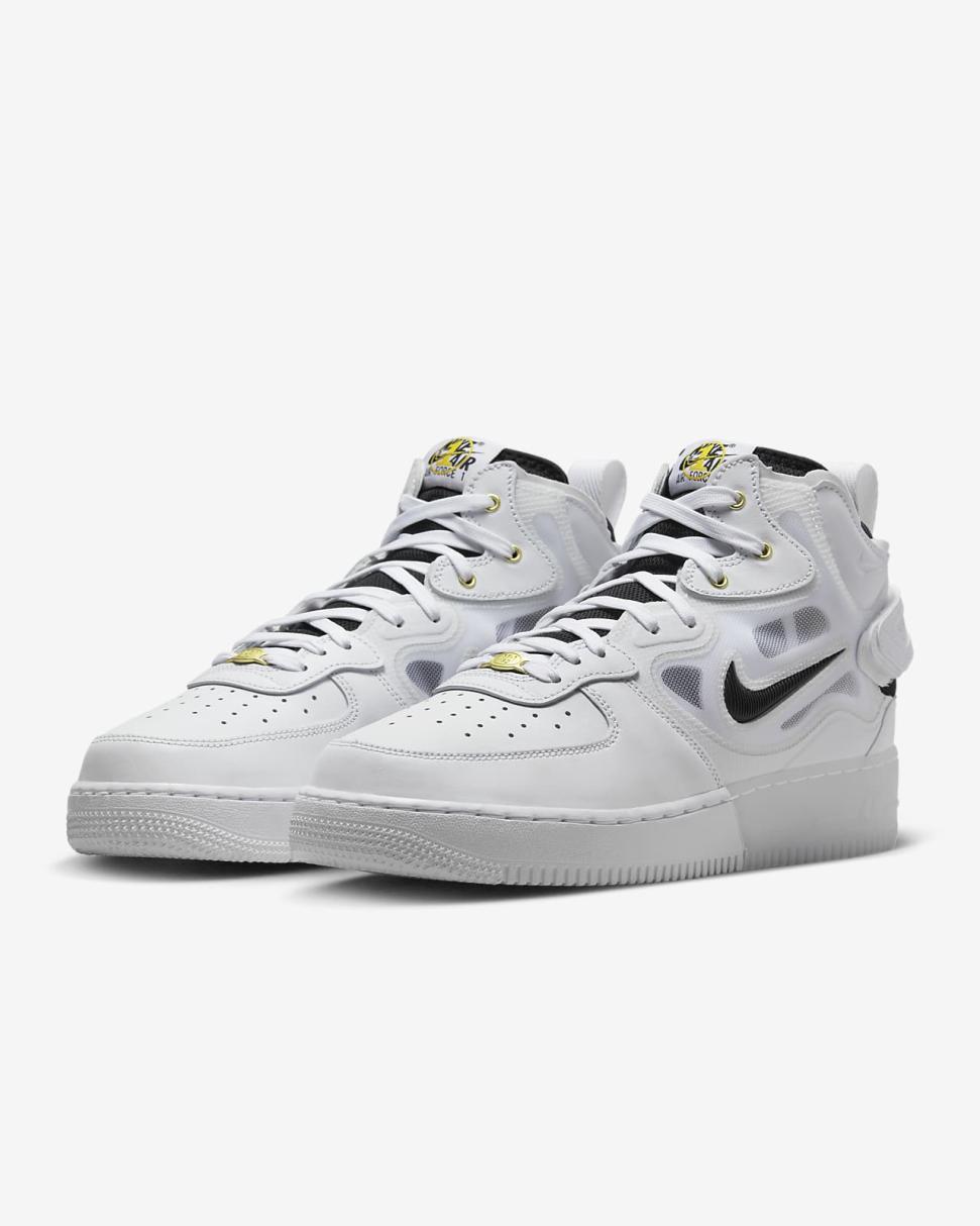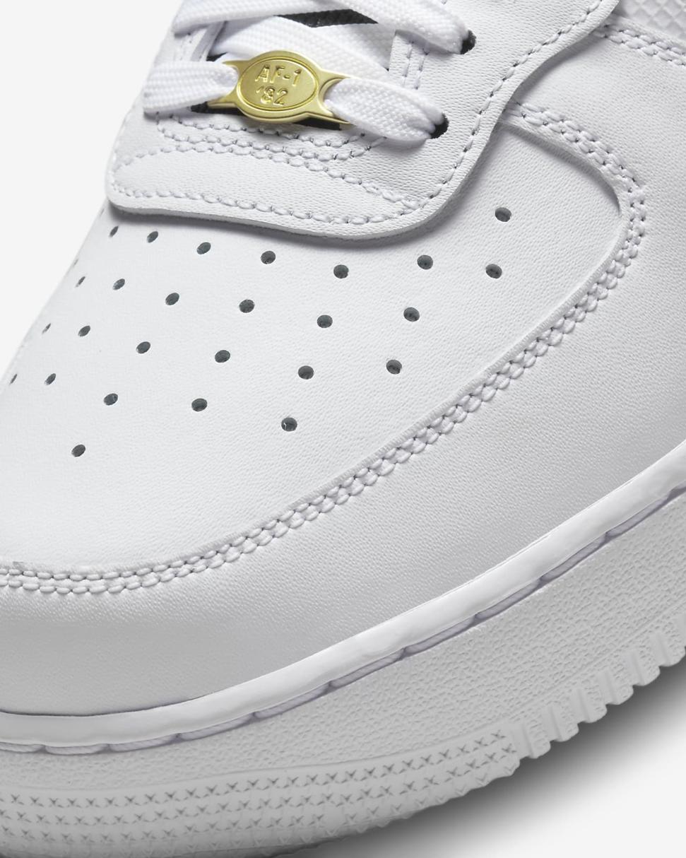 Join the party and celebrate 40 years of pushing sport and fashion boundaries with the Air Force 1 React. Taking a bold step into b-ball iconography, its plush React foam and amplified outsole bring new-age comfort. Polished gold details and fresh branding that blends logos from past releases honor the fearless off-court look and pay tribute to the AF1's reign.
