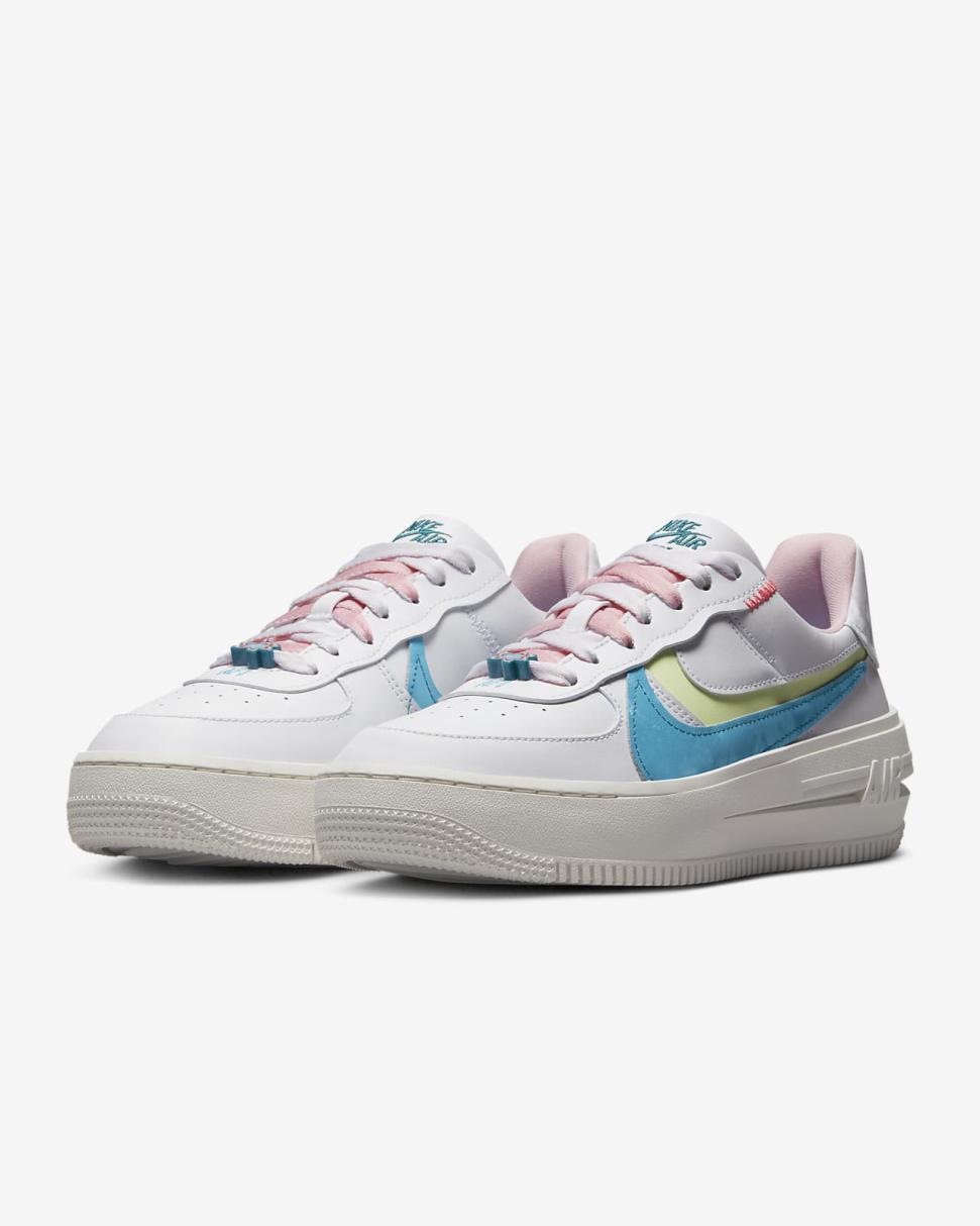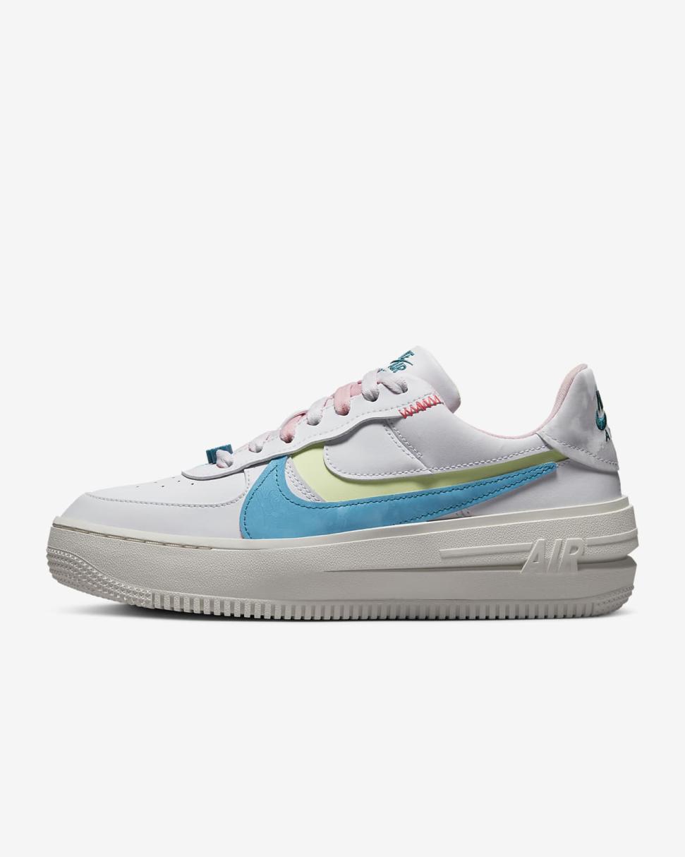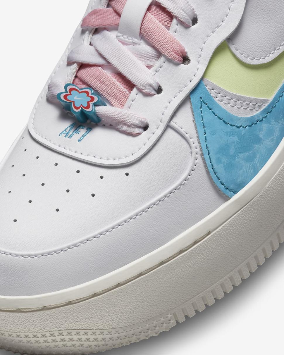 Let your style bloom in fresh kicks. With an elegantly shaped and lifted midsole, the Nike Air Force 1 PLT.AF.ORM delivers a proud, new look to the hoops franchise. Smooth shimmery leather ages to soft perfection while a sculpted collar and cushy foam underfoot help make every step feel comfortable. Plus, whimsical laces, flower-shaped dubraes and pops of bright colors are sure to add a bit of joy to your day.