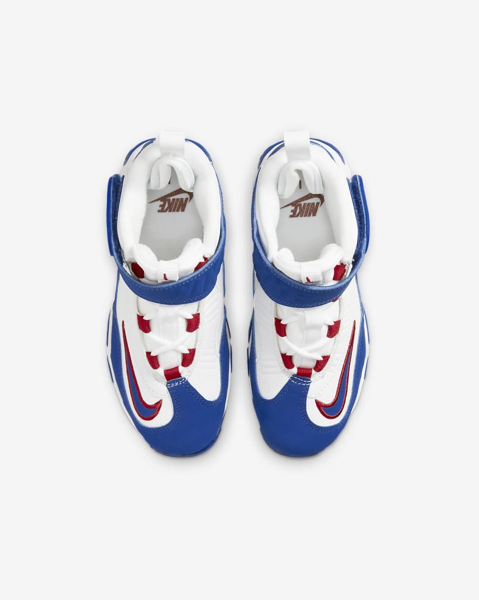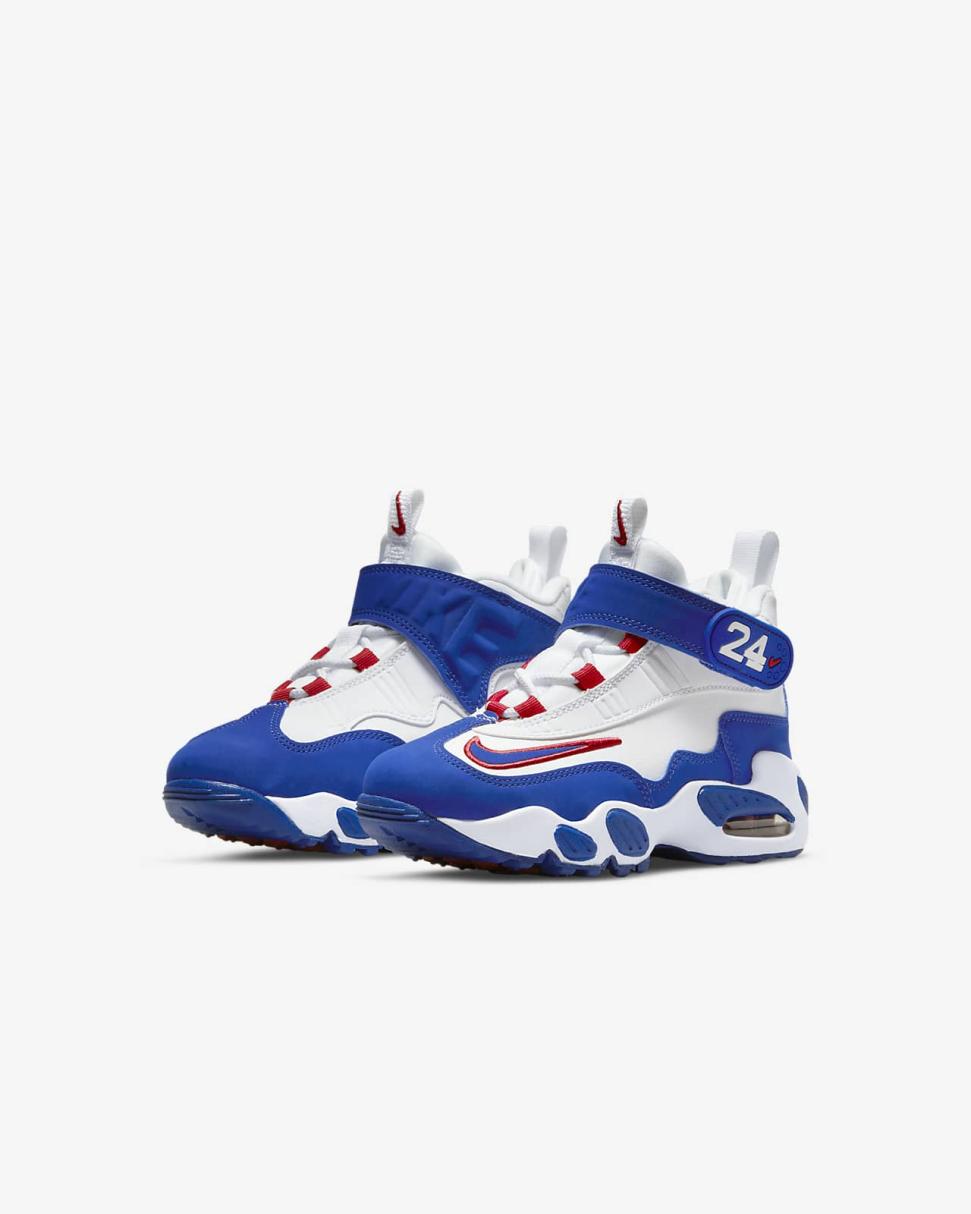 Let your kiddo channel a legend in the Nike Air Griffey Max 1. With 630 home runs under his belt, Ken Griffey Jr. is a baseball icon—and so are his signature sneakers. Max Air in the heel helps keep little feet comfortable while a fun red, white and blue colorway make these a style home run.