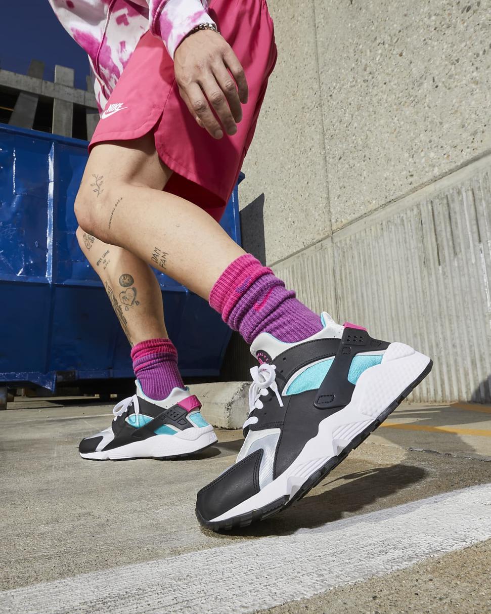 Built to fit your foot and designed for comfort, the Nike Air Huarache brings back a street-level favorite. Soft leather accents on the upper mix with super-breathable, perfectly shined neoprene-like fabric for easy styling. The low-cut collar and bootie-like construction keep it sleek. Its iconic heel clip and stripped away branding keep the early '90s look you love.