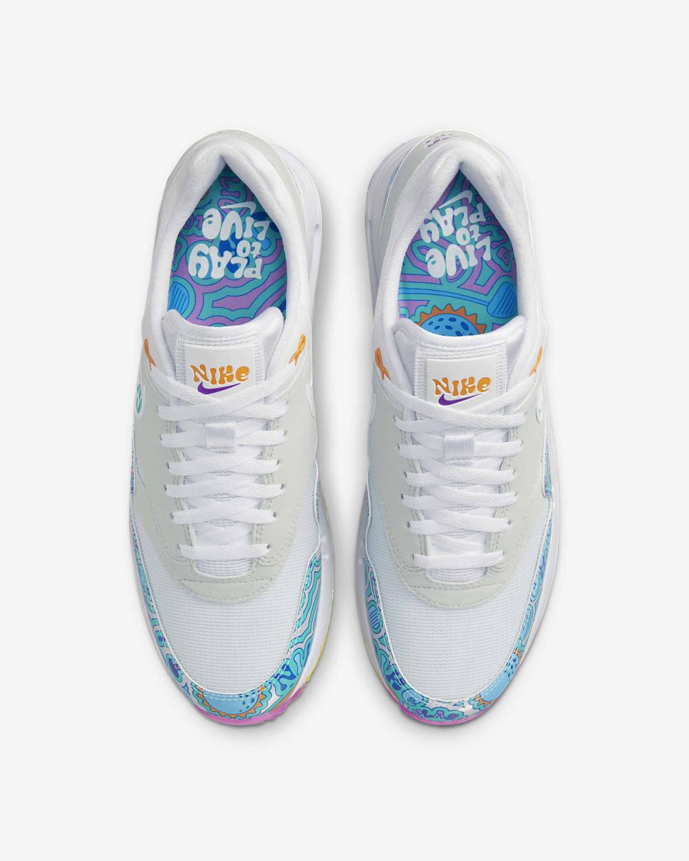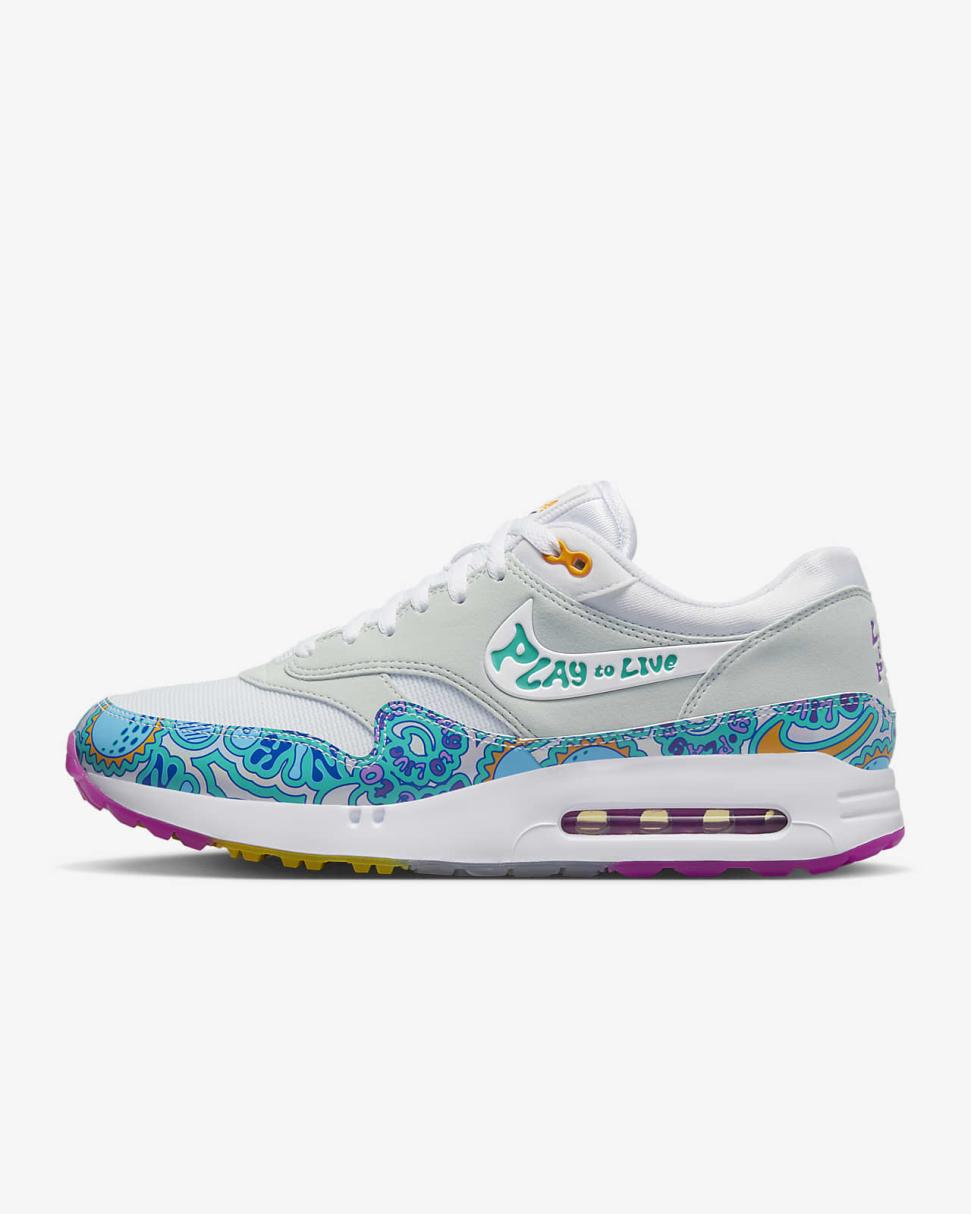 This Air Max 1 '86 OG is a total trip. Its psychedelic colors and far-out fonts blend with the AM1 details you know and love, like clean lines and unmistakable colors. It melds them with our game-changing golf technology, so you can play all day, year-round in a timeless fit. Find your happy medium, no matter if you live to play or play to live. Groovy, baby.