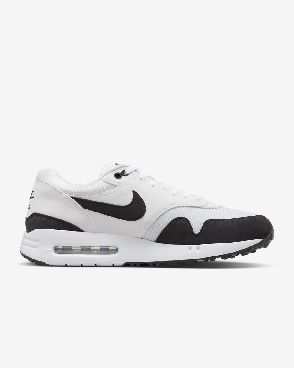 A streetwear legend hits the links in the Air Max 1 G. Featuring the 4-window design that lets you peak at the large Air unit underneath, this is on-course cool, confidence and comfort personified. It sports the vintage Air Max 1 details you love, like clean lines and unmistakable colors, and melds them with our game-changing golf technology, so you can play all day, year-round in a timeless fit.