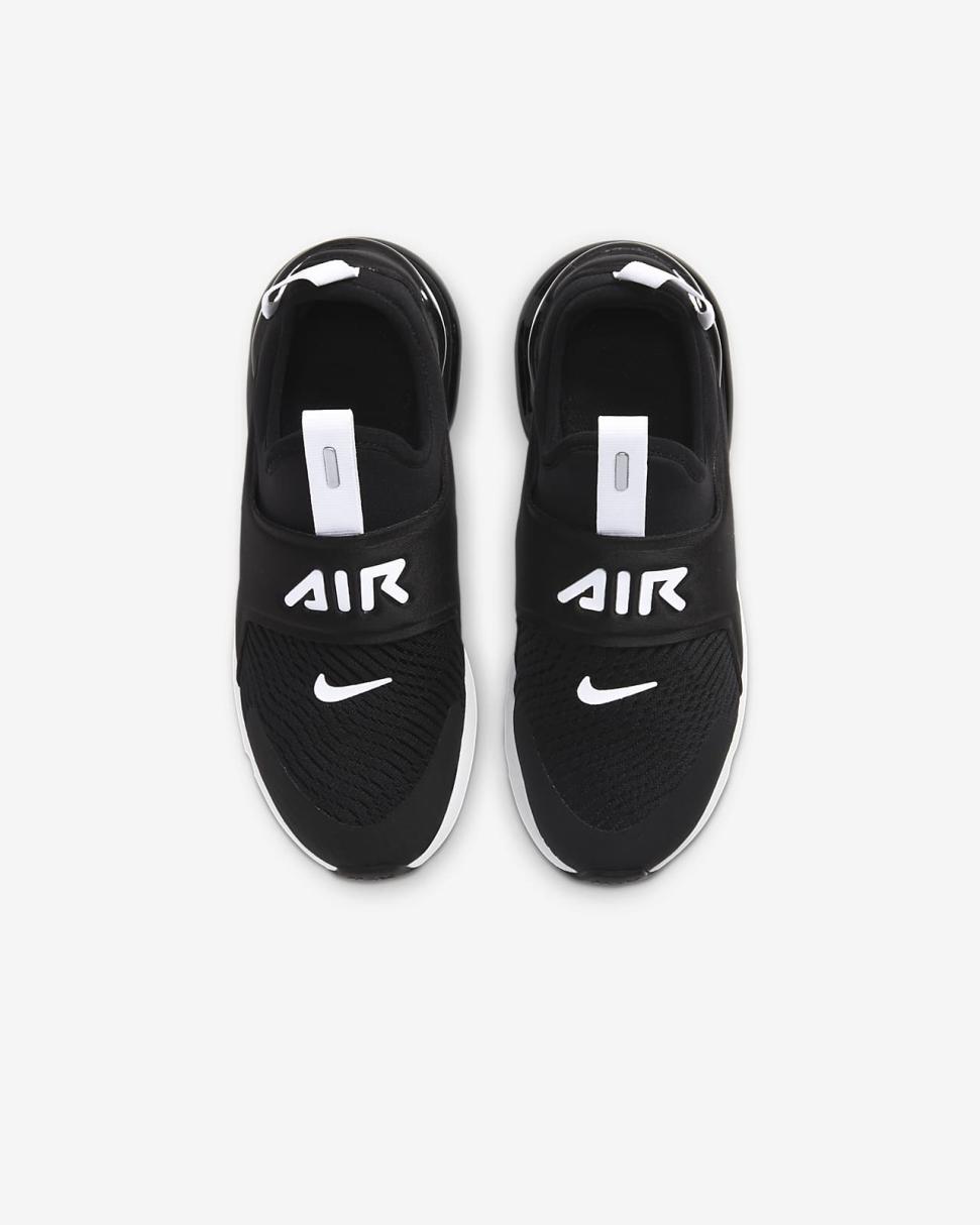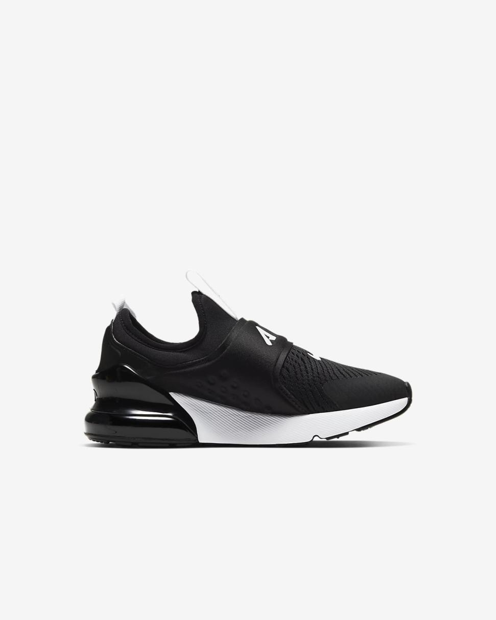 The Nike Air Max 270 Extreme features a slip-on design with fabric that's soft, stretchy and flexible. A Max Air unit in the heel keeps little feet cushioned and comfortable. An elastic strap provides a secure and snug fit. No laces needed.