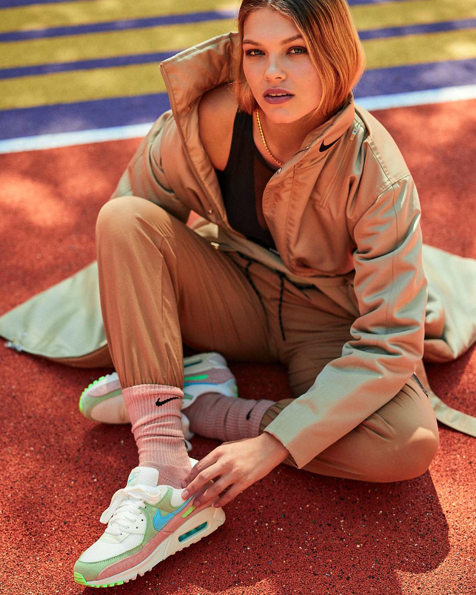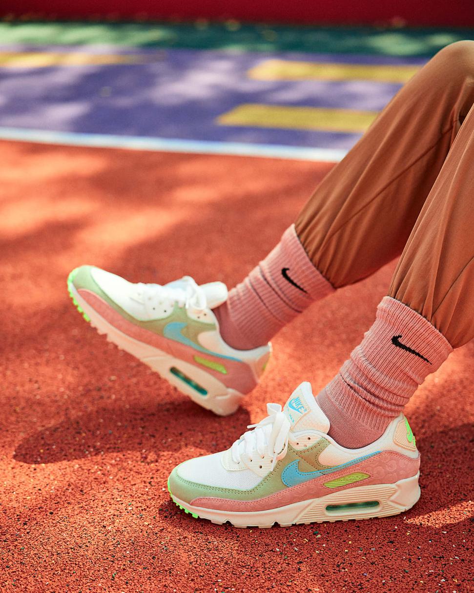 Sink into the tranquil cushioning of the Air Max 90 and let its soothing pastels wash over you. Soft suede overlays, sleek plastic accents and a knit upper create a wealth of rich textures—look closely to spot the embossed leopard print. Exposed Air and an iconic Waffle outsole help these inspired kicks remain a timeless classic.