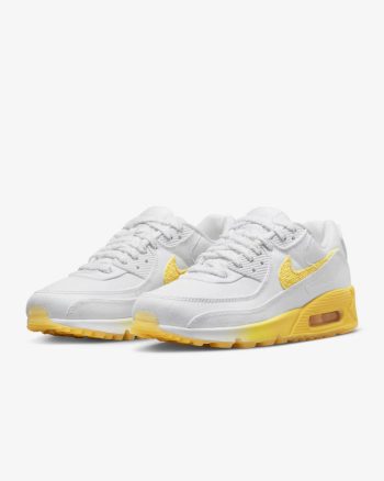 Nothing as fly, nothing as comfortable, nothing as proven. The Nike Air Max 90 stays true to its roots with its iconic Waffle outsole, durable stitched overlays and classic plastic accents. A pop of sunshine-y, summery yellow adds a touch of vibrant style while visible Max Air keeps the comfortable cushioning you love.