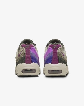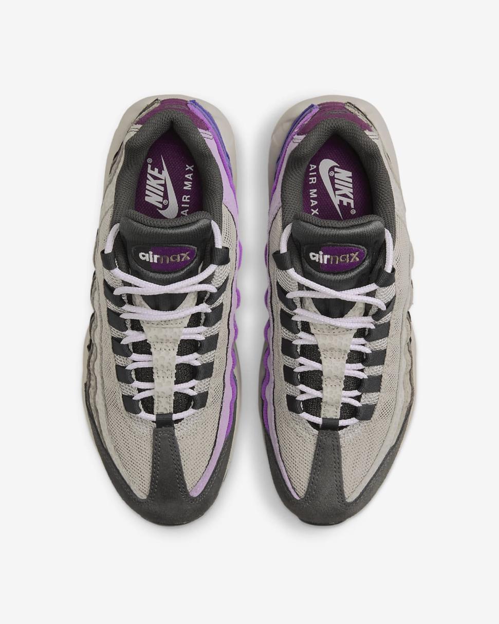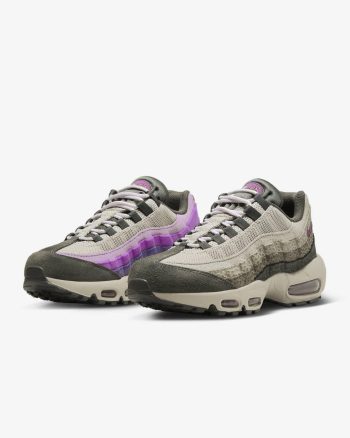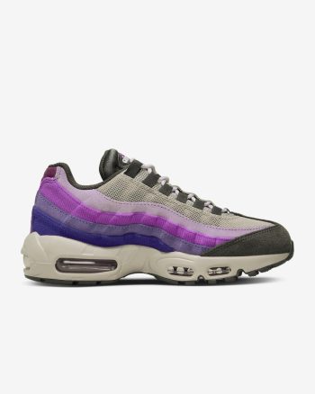 Step out in style and tried-and-true comfort with the Nike Air Max 95. We paired vibrant shades of purple with lightly patterned neutrals for a mismatched look that's sure to turn heads. Wavy side panels add a natural flow to any outfit while visible Air units in the heel and forefoot deliver soft and responsive cushioning.