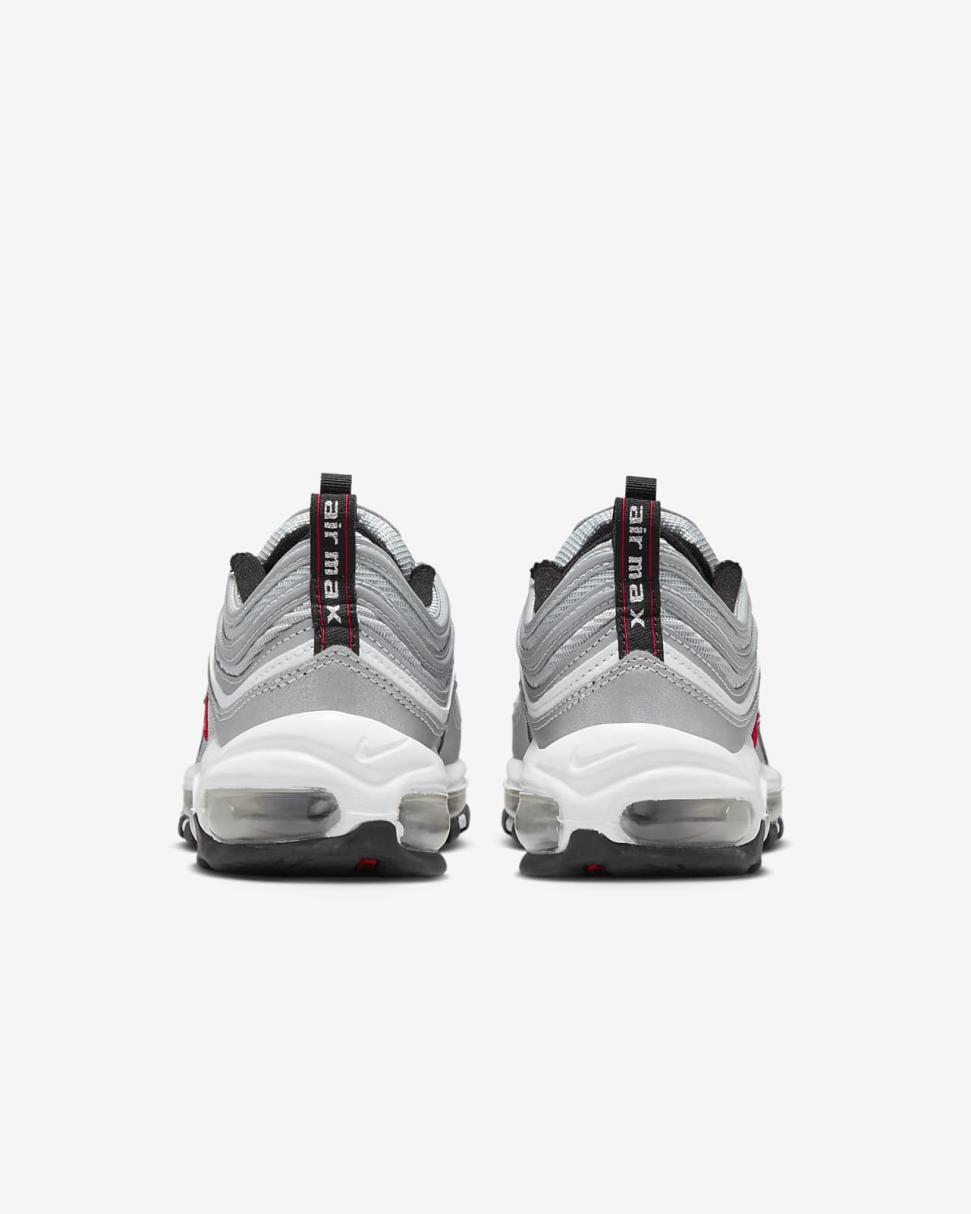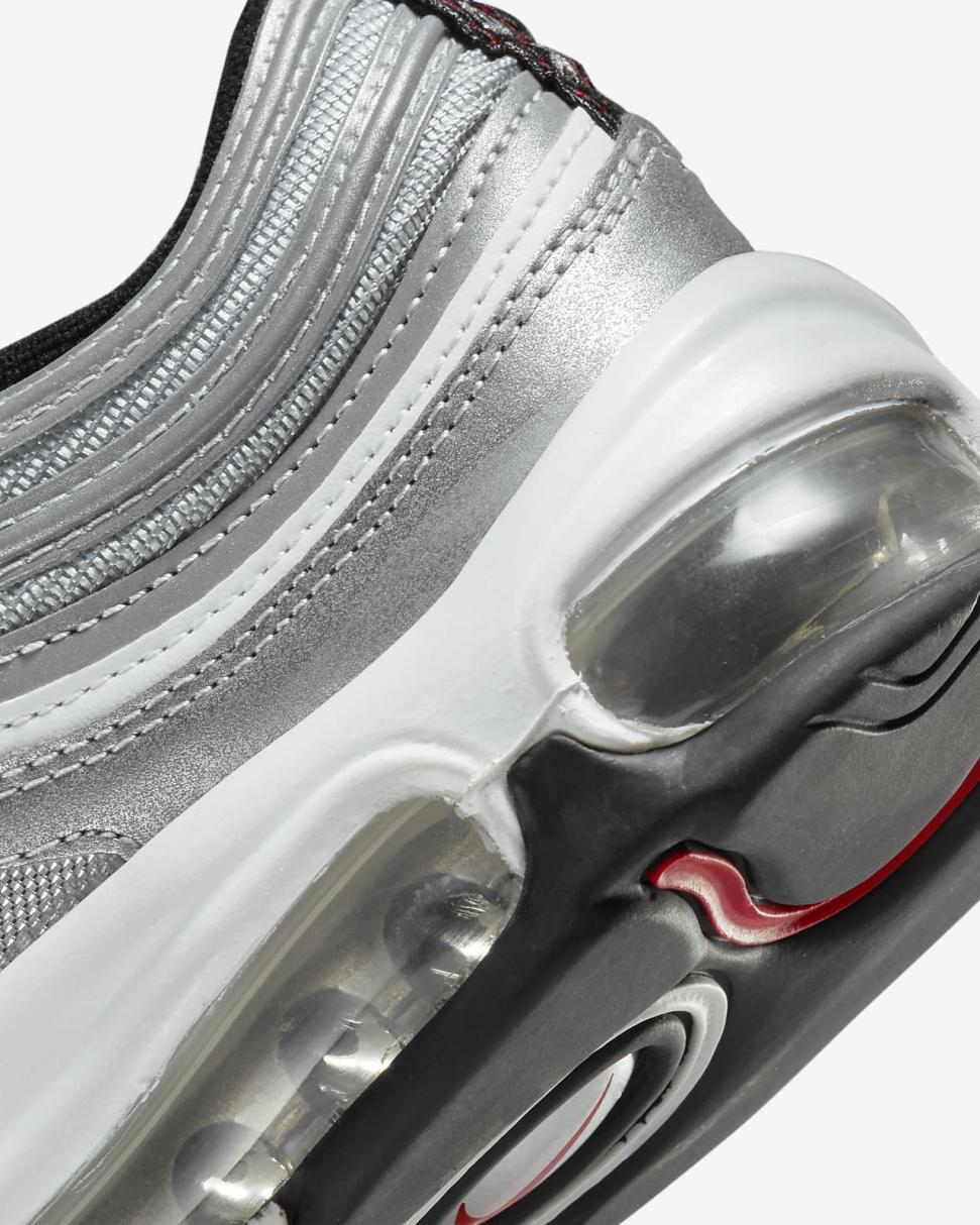 Push your style full speed ahead with the Air Max 97. Its iconic design takes inspiration from water droplets and Japanese bullet trains. Full-length Nike Air cushioning lets you ride in performance comfort. Lace up and ride first class.