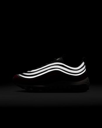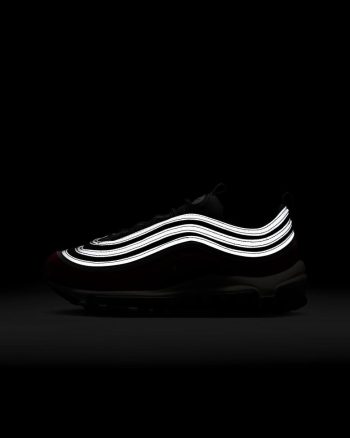We used our imaginations to rethink how an Air Max 97 could feel—without changing how it looked. Made with your feet in mind, the outsole is more flexible than previous editions so you can spring like a kangaroo and sprint like a cheetah. We also swapped out the layers of stiff materials around the foot with a soft fabric and piping to create a layered look. It's time to move!
