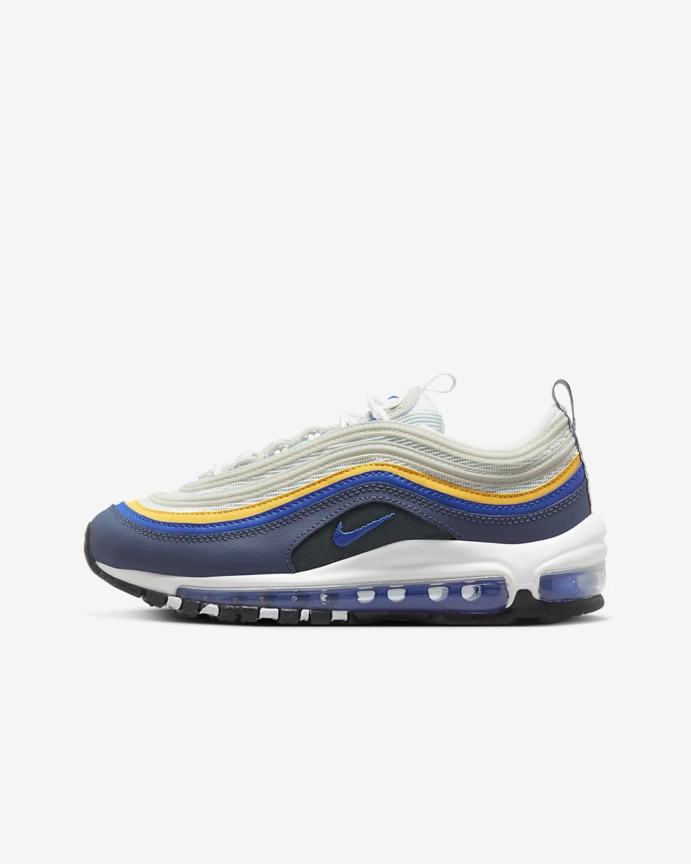 The Nike Air Max 97 is the shoe that will have you walking on Air—literally! This icon was the first to showcase Max Air underfoot from heel to toe. Plus, it rocks the wavy, water ripple-inspired lines that make the 97 a classic forever.
