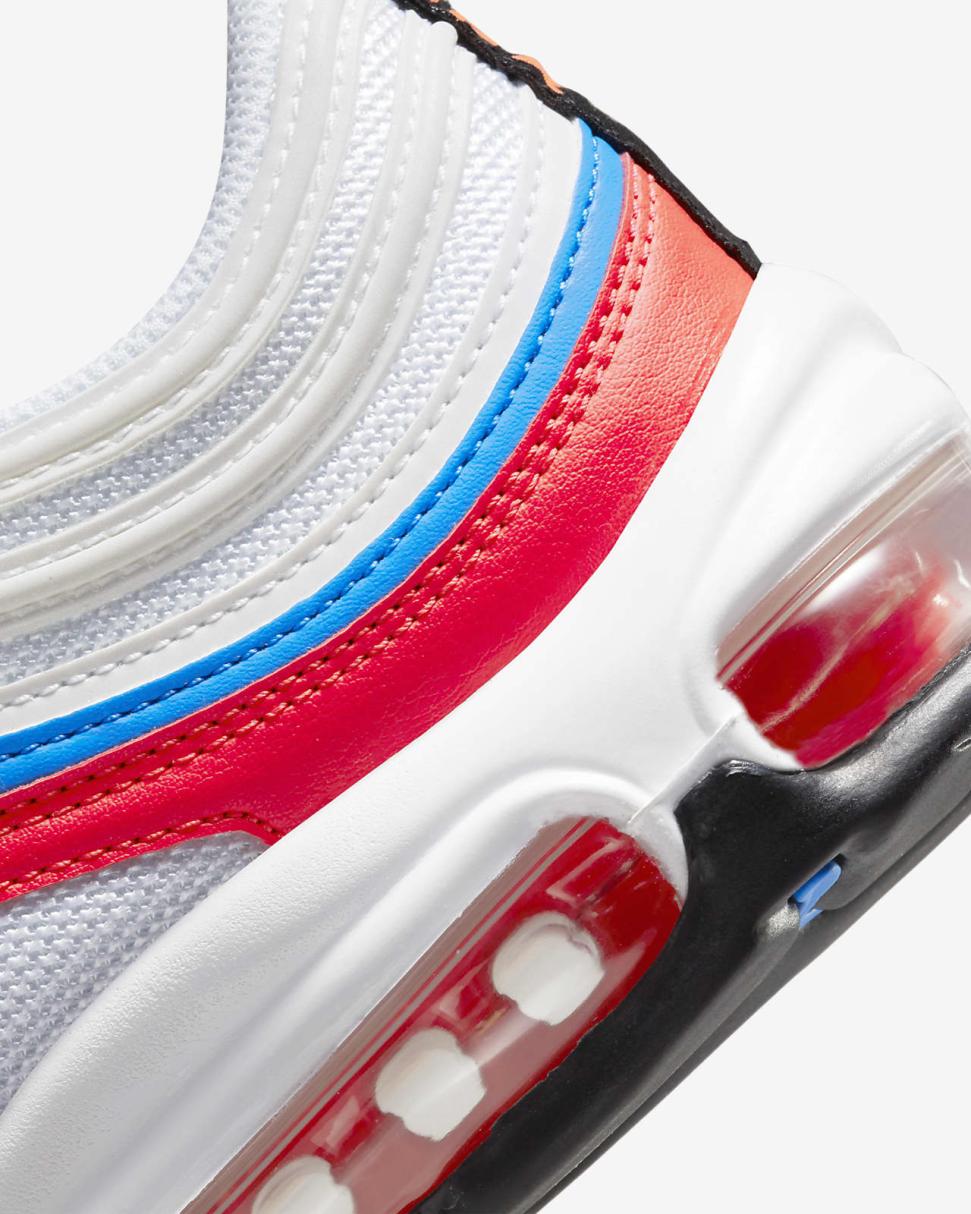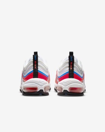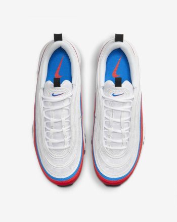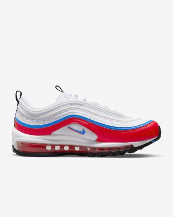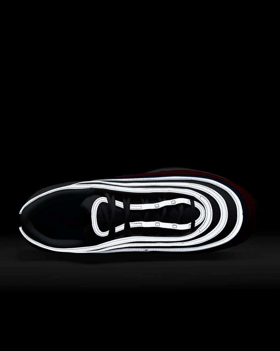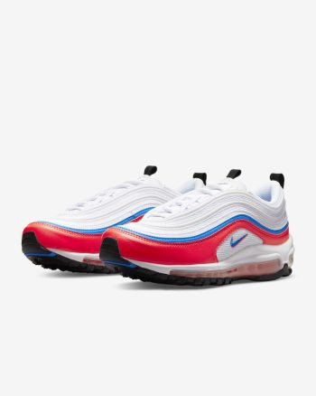 Push your style full speed ahead in the Nike Air Max 97, which features an iconic ripple design inspired by Japanese bullet trains. Pops of red, white and blue add a fresh update, while the revolutionary full-length Nike Air unit that once shook up the running world lets you ride in first-class comfort wherever you go.