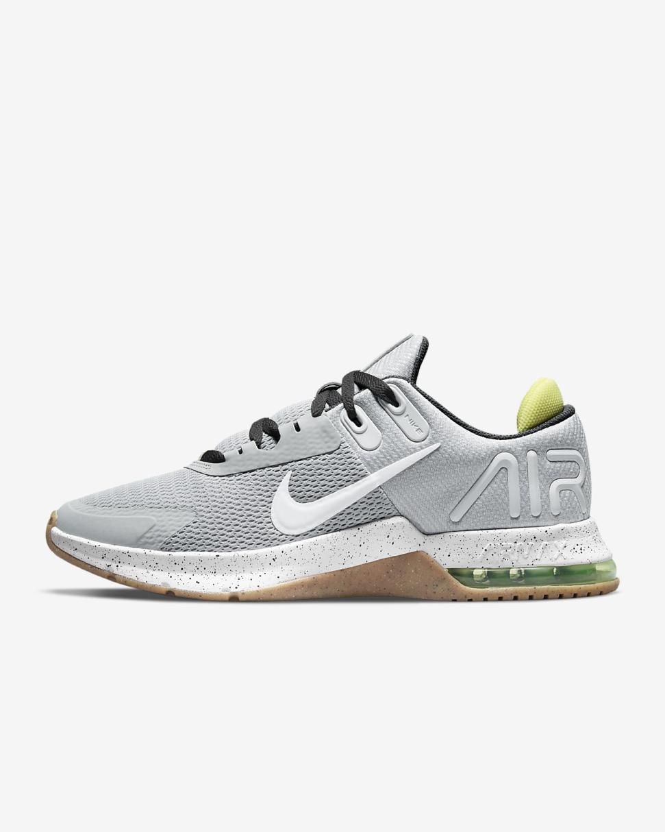 Tackle your most intense workouts in the Nike Air Max Alpha Trainer 4. The wide, flat base with Nike Air cushioning gives you comfortable stability for lifting. The heel is redesigned with supportive padding that helps take a load off your heaviest sets. Everything comes together in a durable shoe built for the rigors of the gym.