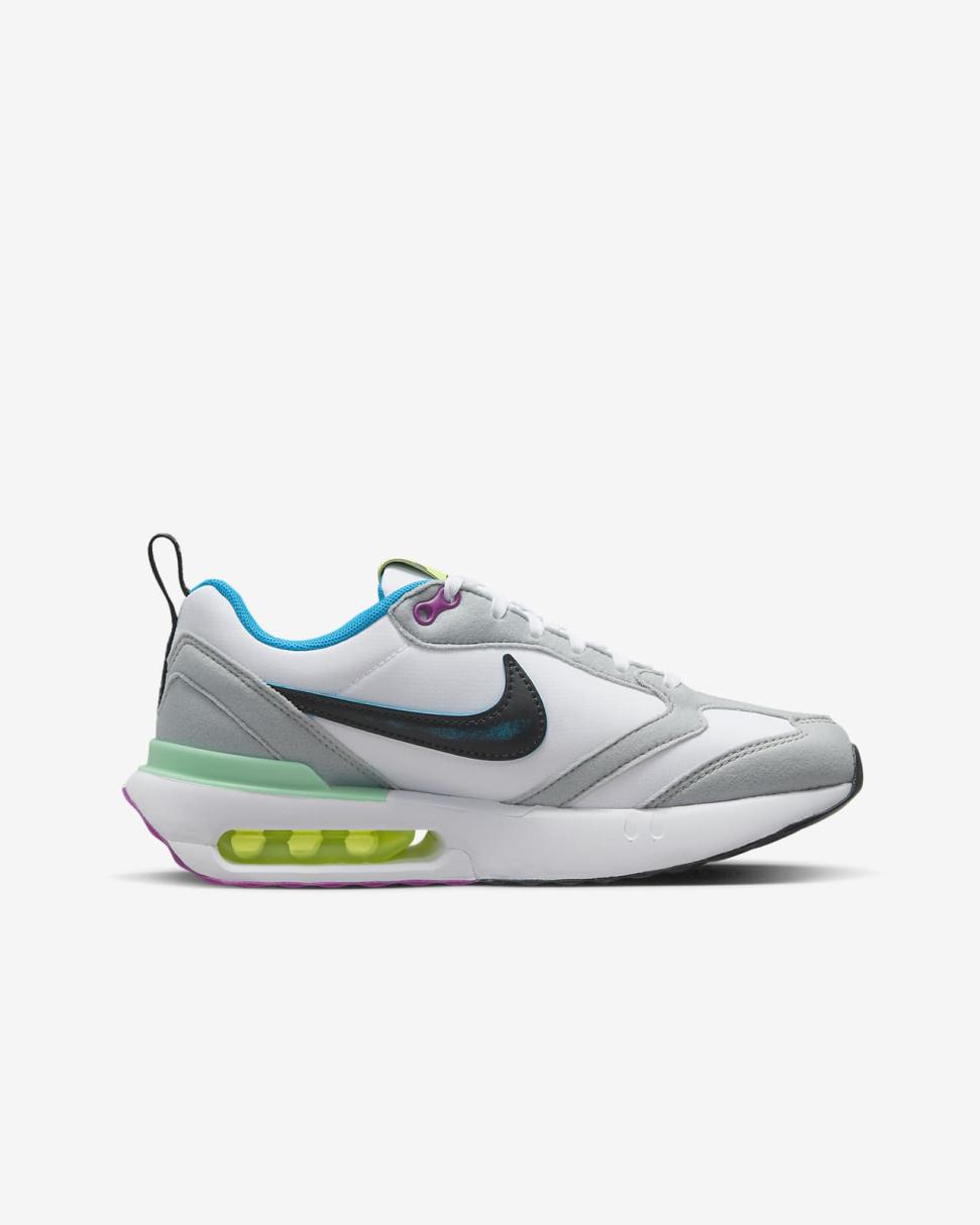 In the Air Max world, a new day rises with the Nike Air Max Dawn. These kicks combine vintage running vibes with a special colorway inspired by the bold and expressive attitude of punk rock. Plus, the black on the Swoosh designs rubs away to reveal a vibrant new color underneath. Designed to be durable and cushioned with Air, these will have you ready to rock in no time.