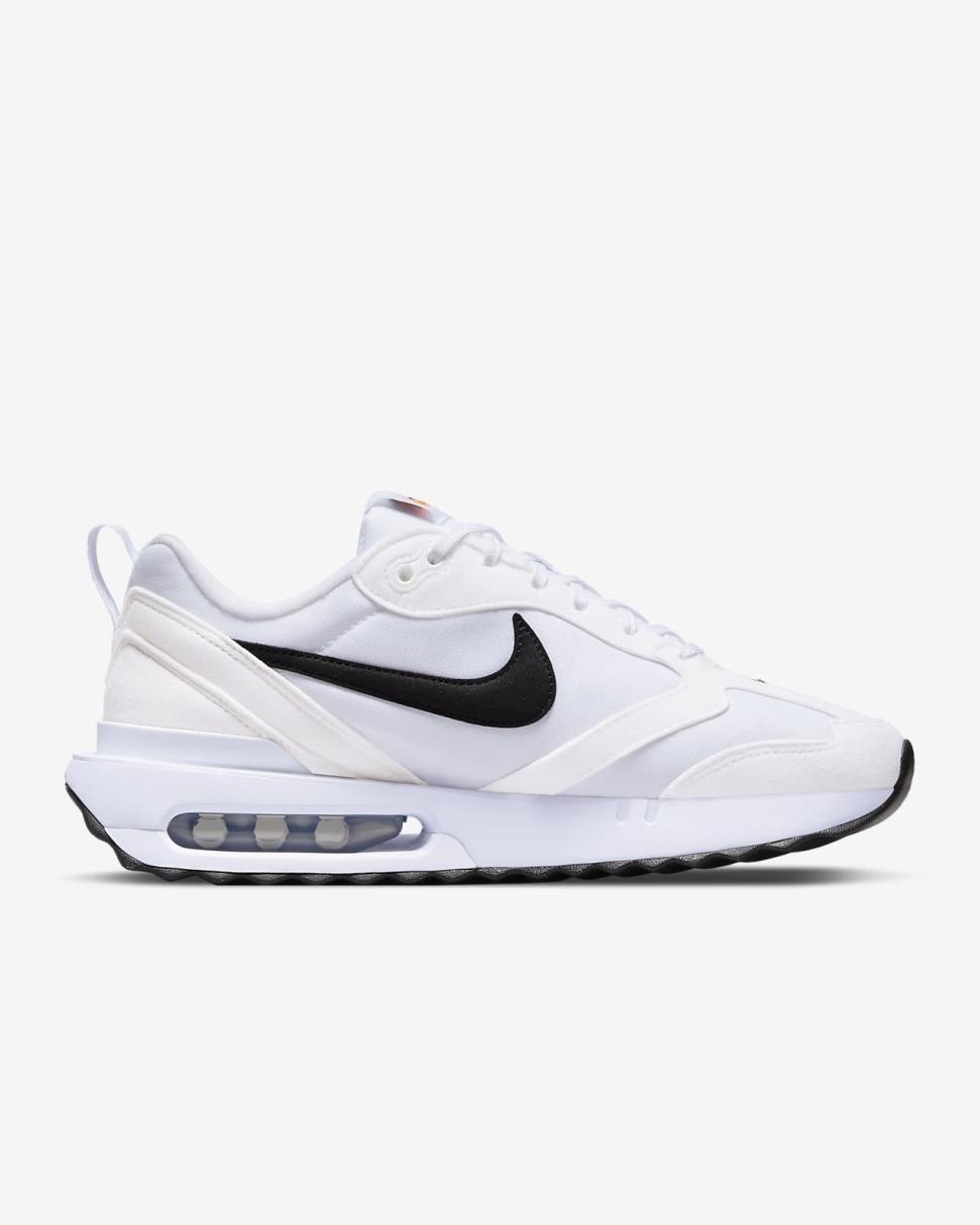 Rooted to sporty track DNA, the Air Max Dawn is thoughtfully crafted with Air cushioning to deliver a feel-good forecast for your day. Soft synthetic suede and airy textile blend vintage running vibes with modern design. The plush foam in the midsole slants at the heel for added energy while the outsole pattern gives your style traction.
