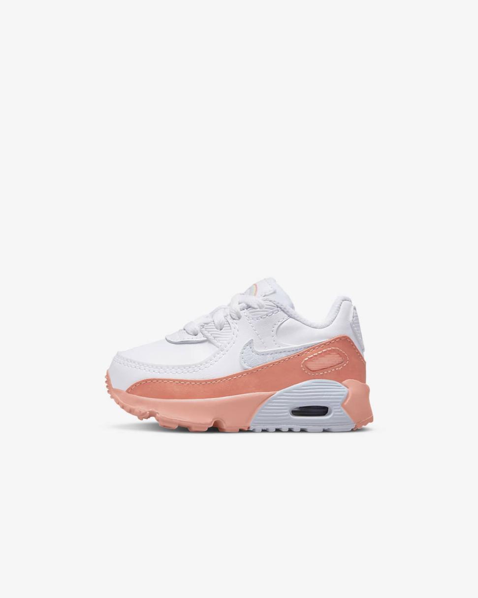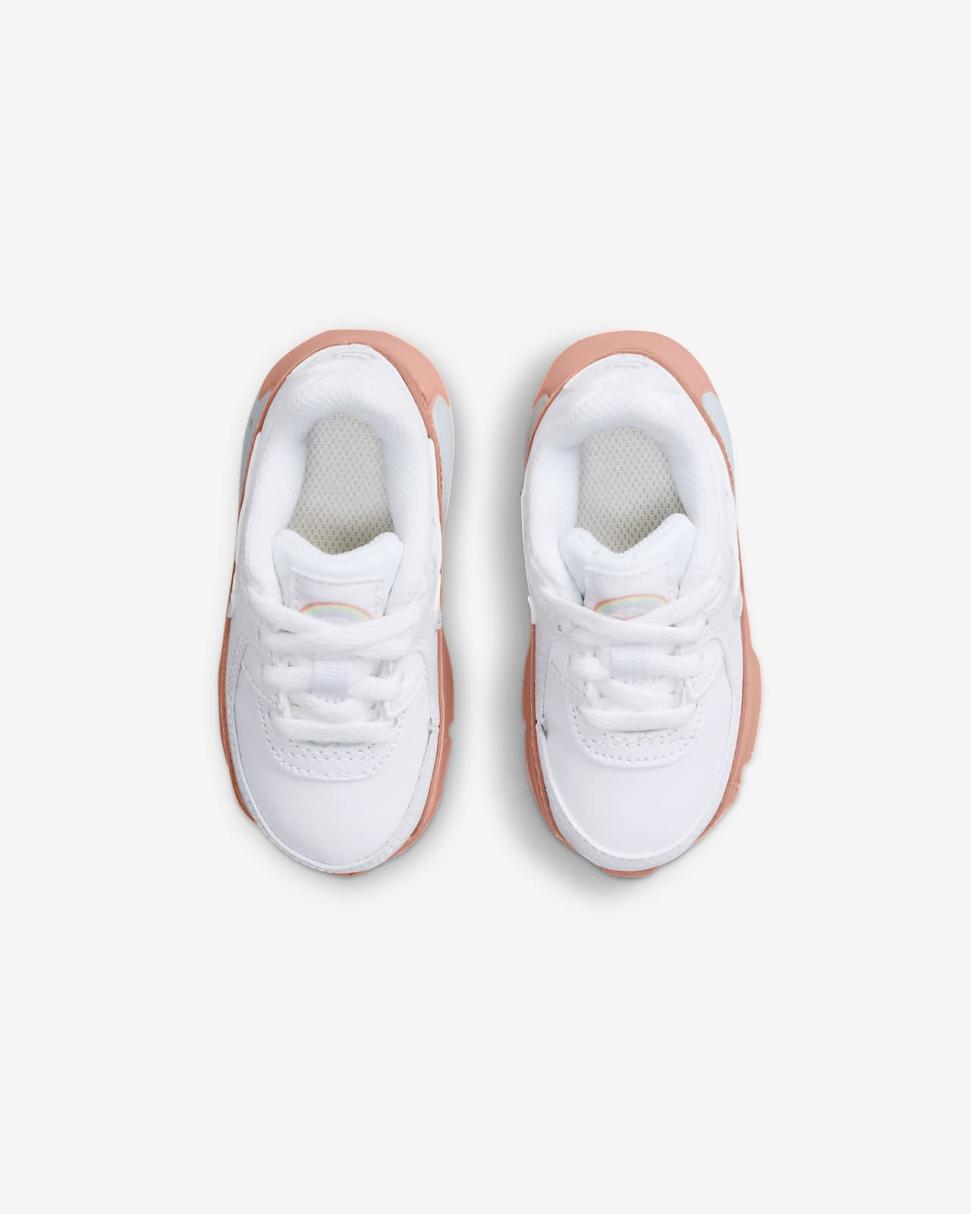Soft, chalky colors and a sun-washed rainbow on the Nike Air Max 90 LTR SE celebrate the happy, hopeful messages seen in kids' sidewalk art. Delivering comfort and flexibility for growing feet, the design keeps the classic Max Air cushioning that keeps kiddos moving.