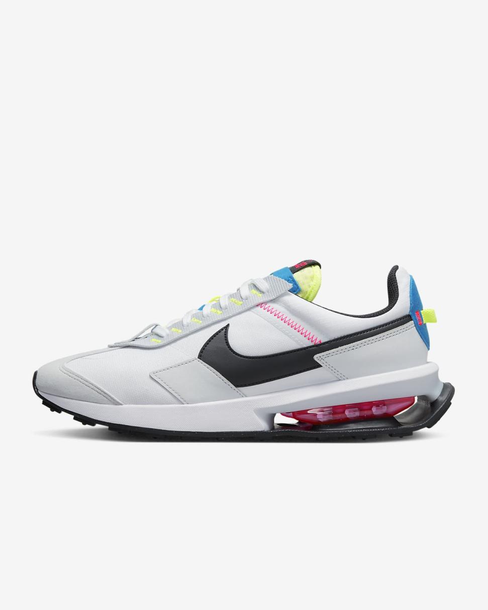 Taking the look of heritage Nike running into a new realm, the Nike Air Max Pre-Day brings you fast-paced style ready for today's world. It mixes a variety of contrasting fabrics to create layers of energy. Plus, the modernized Air window adds head-turning design while revealing the comfy cushioning within.