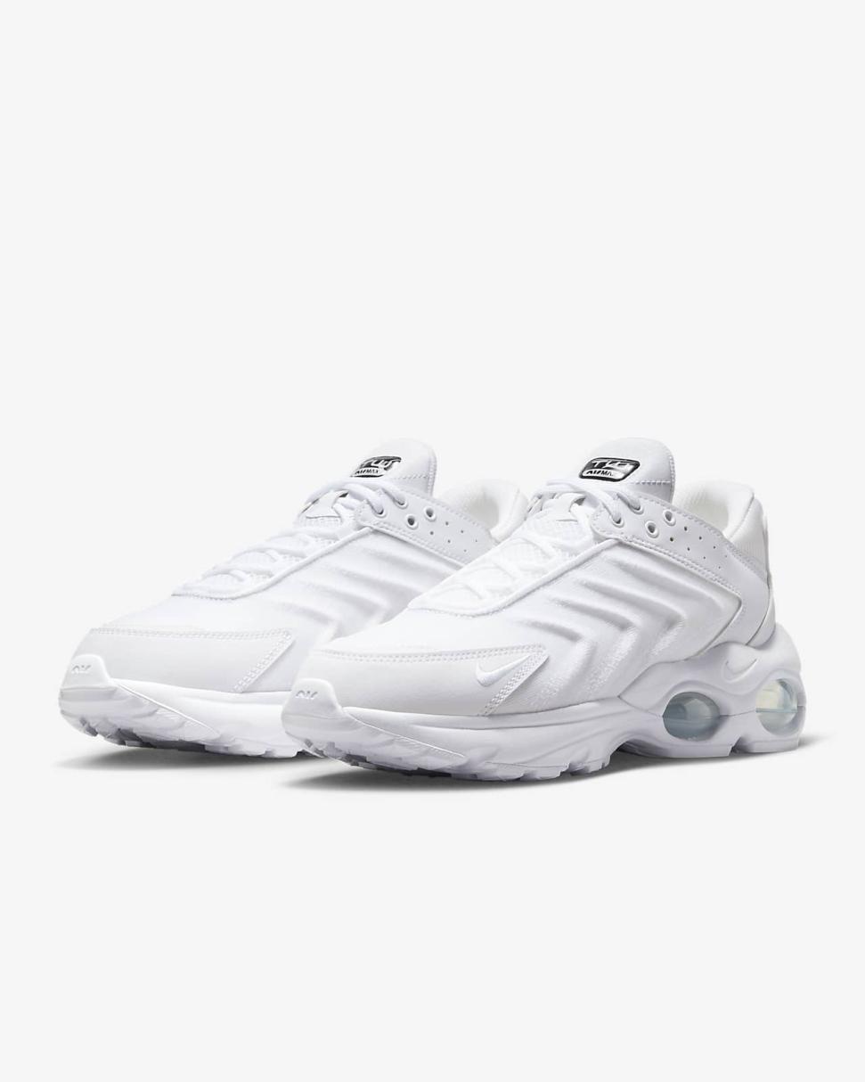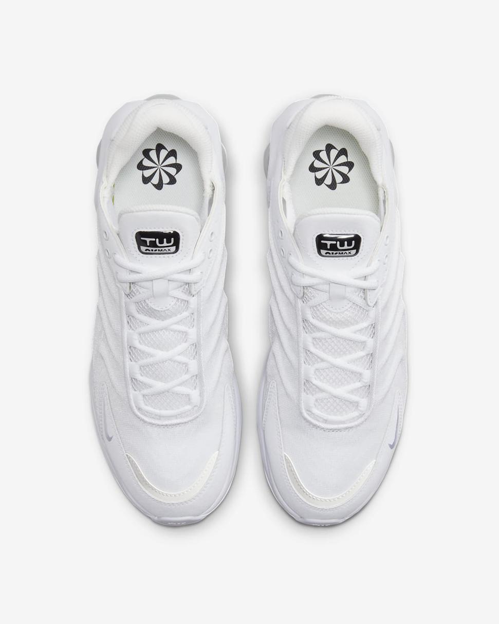 So you're in love with the classic look of the '90s, but you got a thing for today's fast-paced culture. Meet the Air Max TW. Inspired by the treasured franchise that brought Nike Air cushioning to the world and laid the foundation for the track-to-street aesthetic, its eye-catching design delivers a 1-2 punch of comfort and fashion. Ready to highlight any ‘fit, its lightweight upper pairs angular and organic lines to create an entrancing haptic effect. The contrasting colorways make it easy to style. And if you’re ready for the next step, the 5 windows underfoot deliver a modern edge to visible Air cushioning.