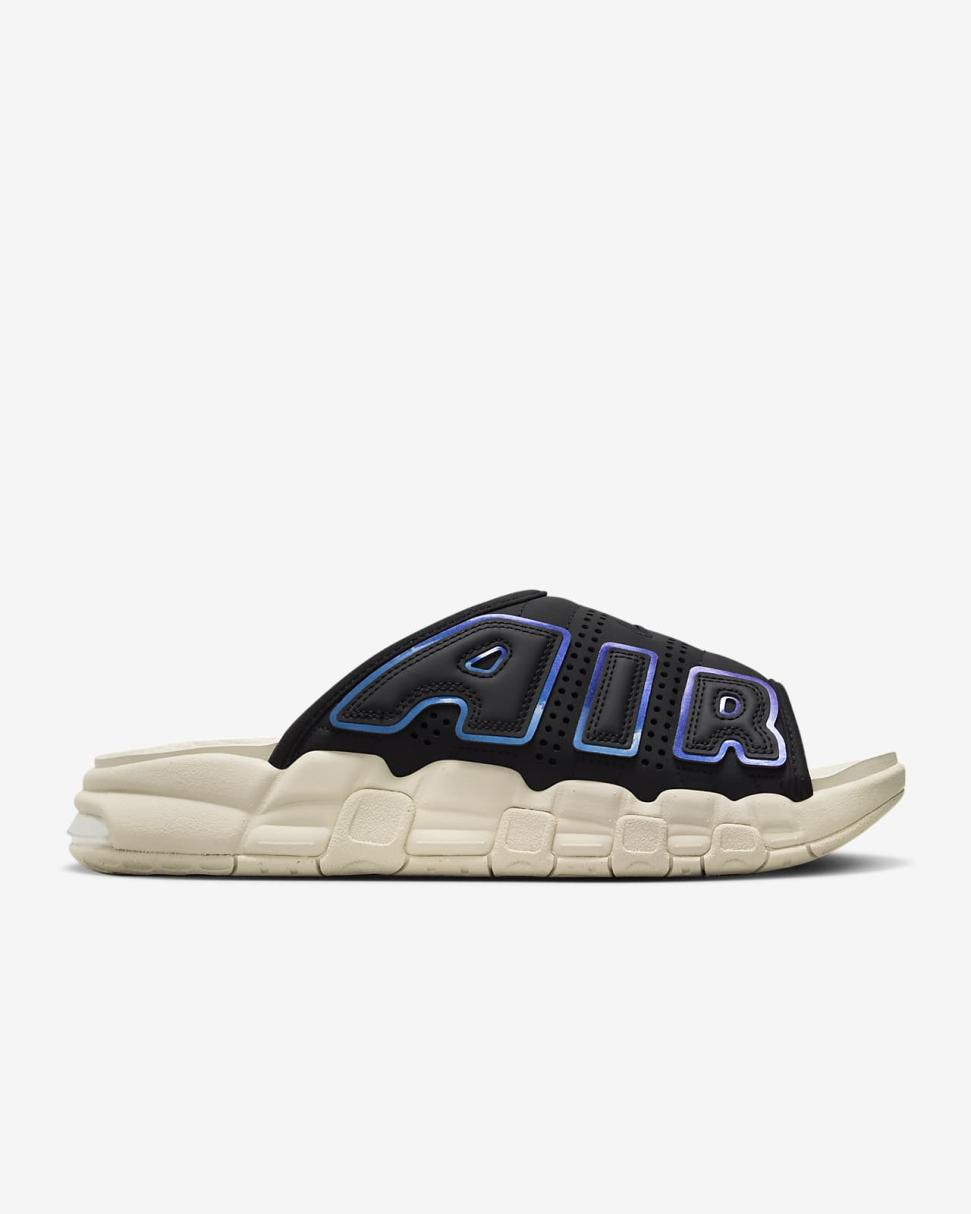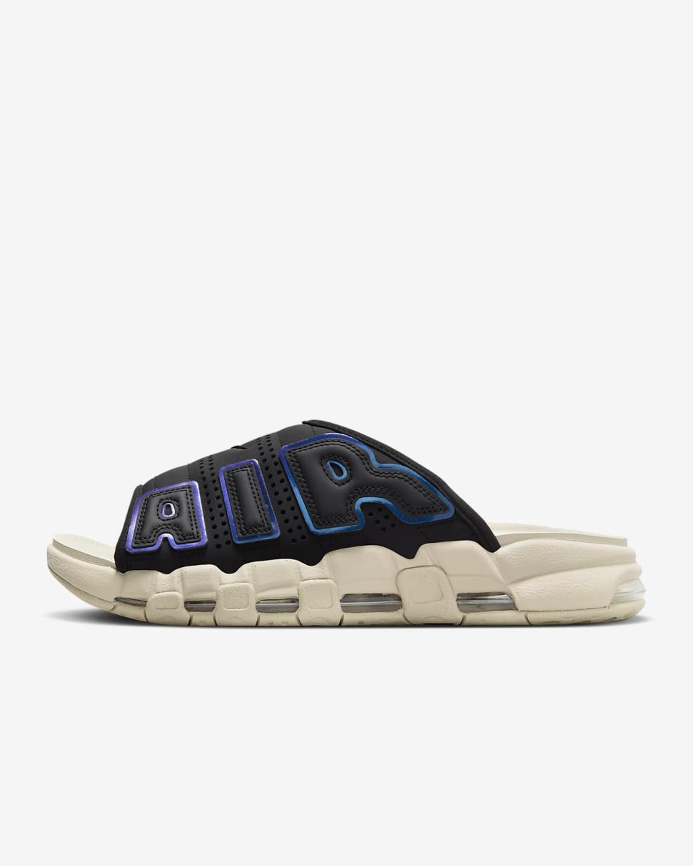 Keeping the exaggerated, graffiti-styled "AIR" graphics and Nike Air cushioning you love from the original, your favorite hoops look gets transformed into slides you can easily slip on and off. Pairing '90s style with summertime comfort, its plush strap, airy perforations and soft foam make it a perfect choice—courtside, beachside and anywhere in between.