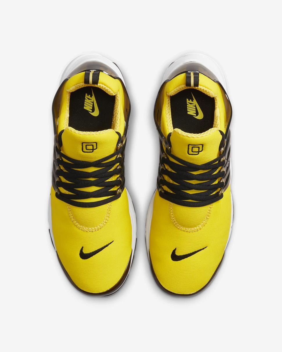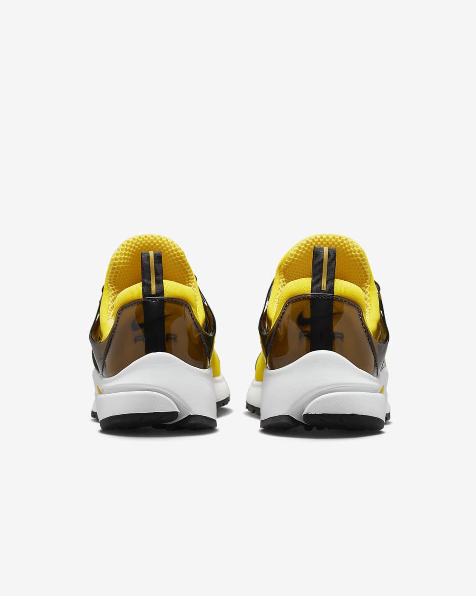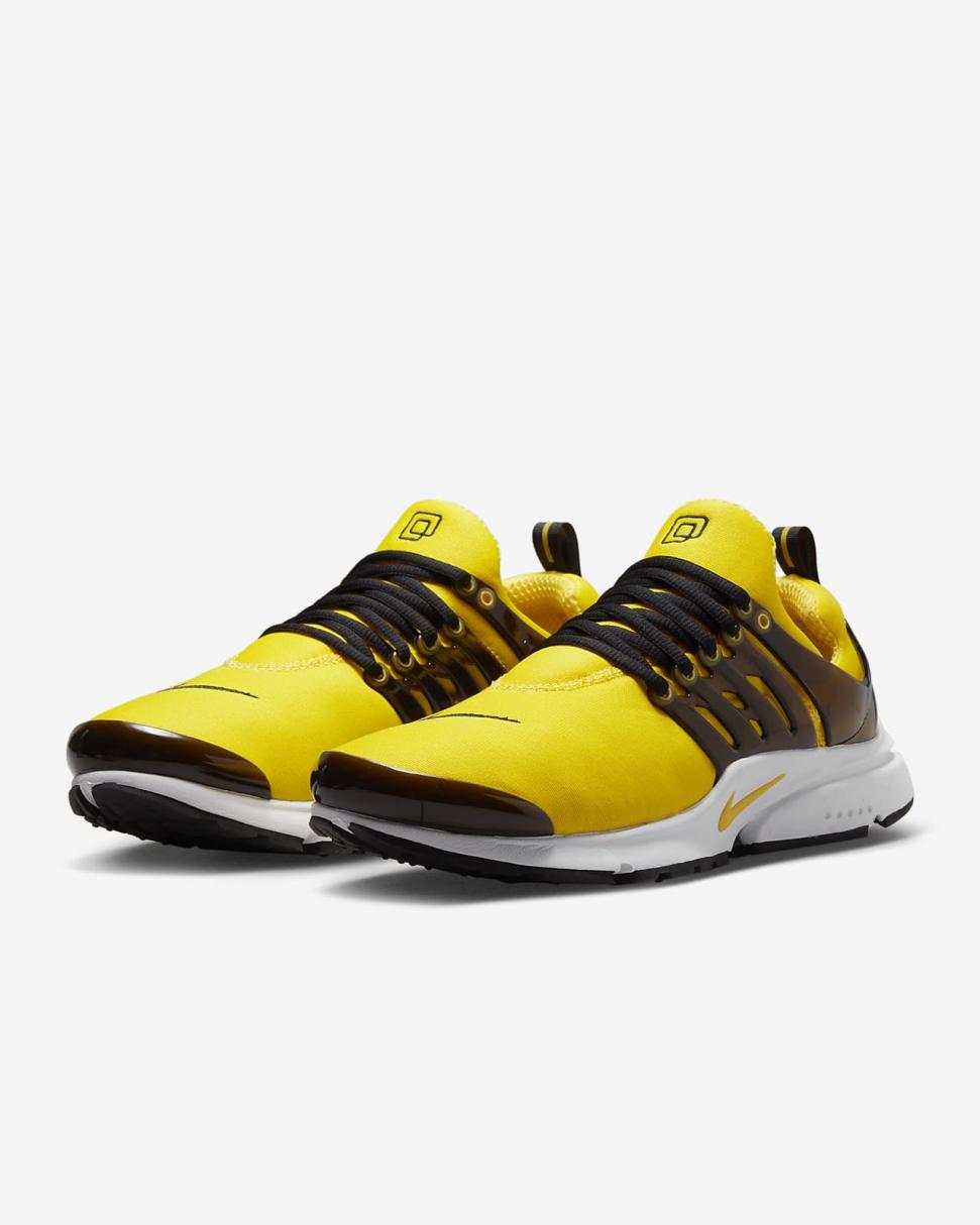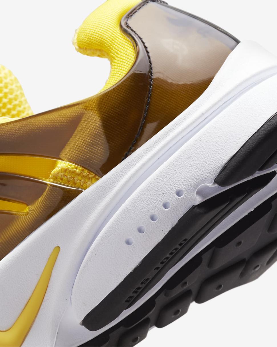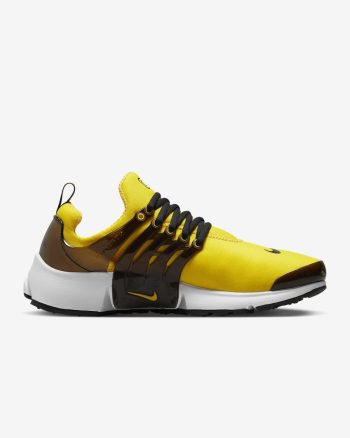 With a design that's cozier than your favorite T-shirt, the Presto is made to feel good and look fast. Its Tour Yellow stretchy material creates a sock-like fit, while the glossy midfoot cage polishes your look with added support. We dare you to take them off.