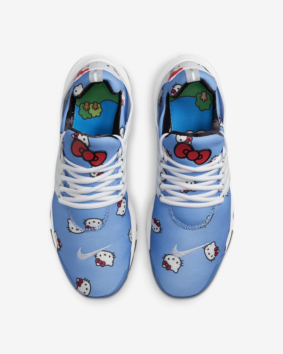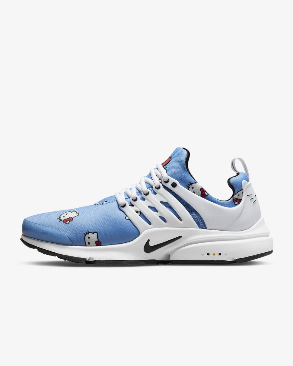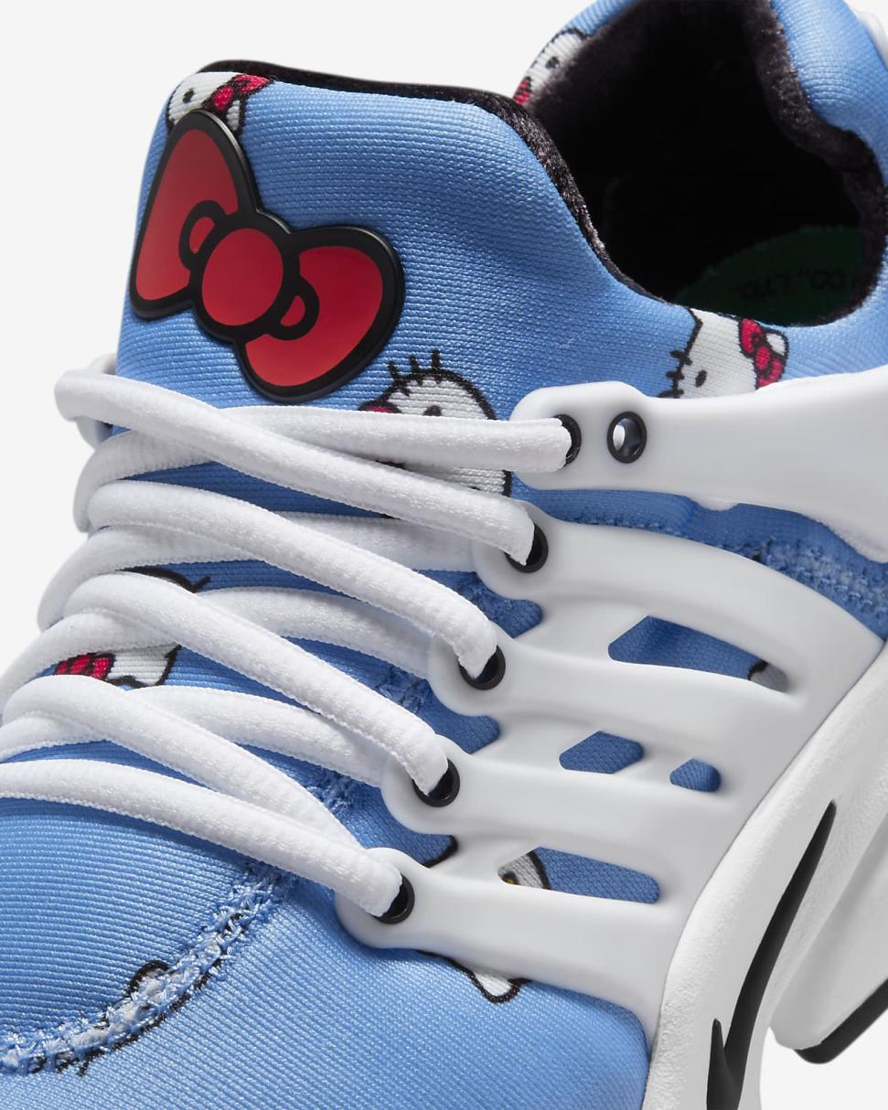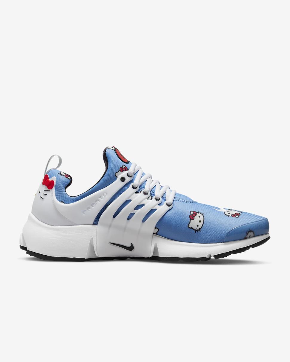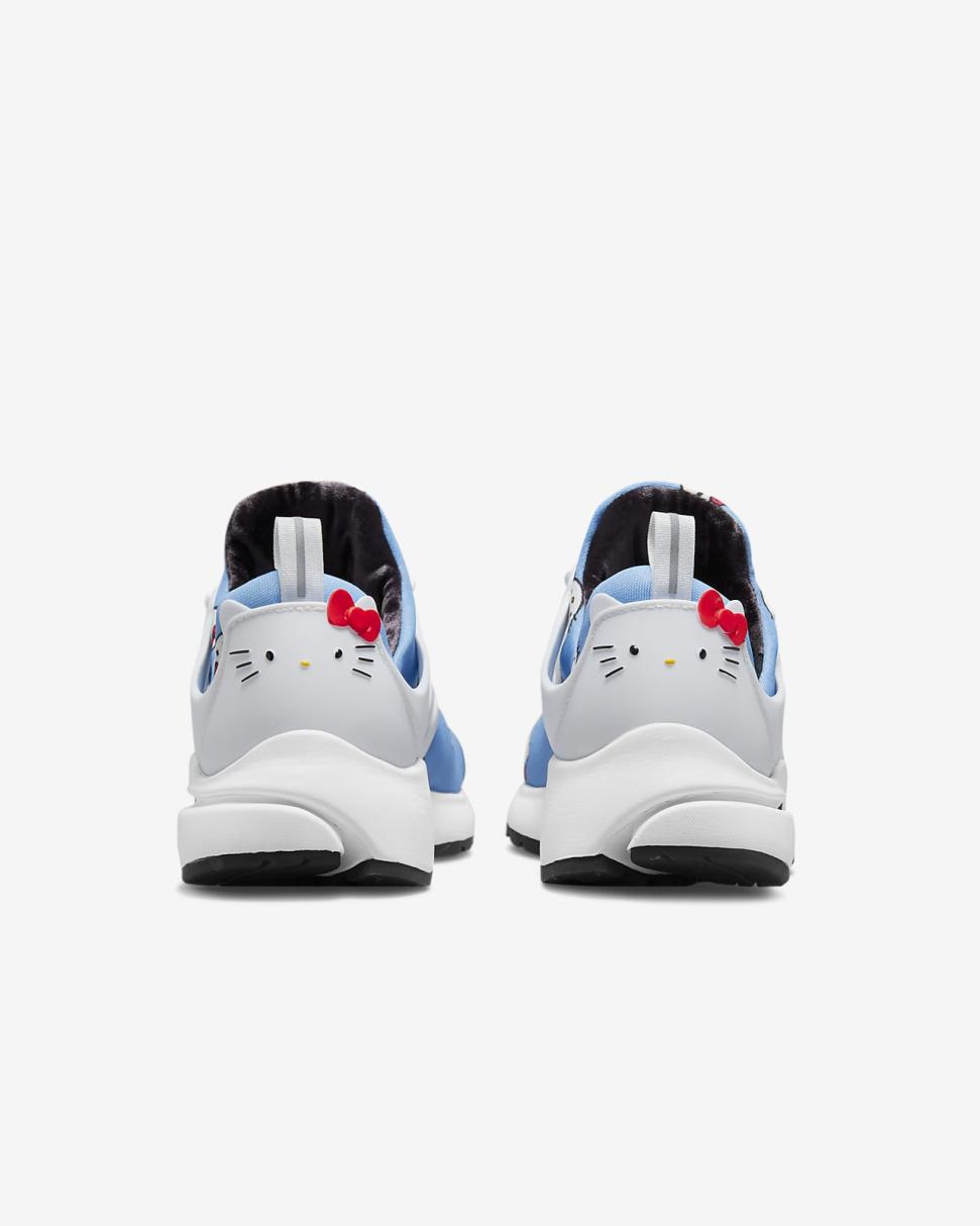 The sockliner graphic takes you into Hello Kitty's supercute world while the 5 dots on the midsole (a reference to the Nike Alpha Project, from which the classic Air Presto emerged) are colored as Hello Kitty's face.
