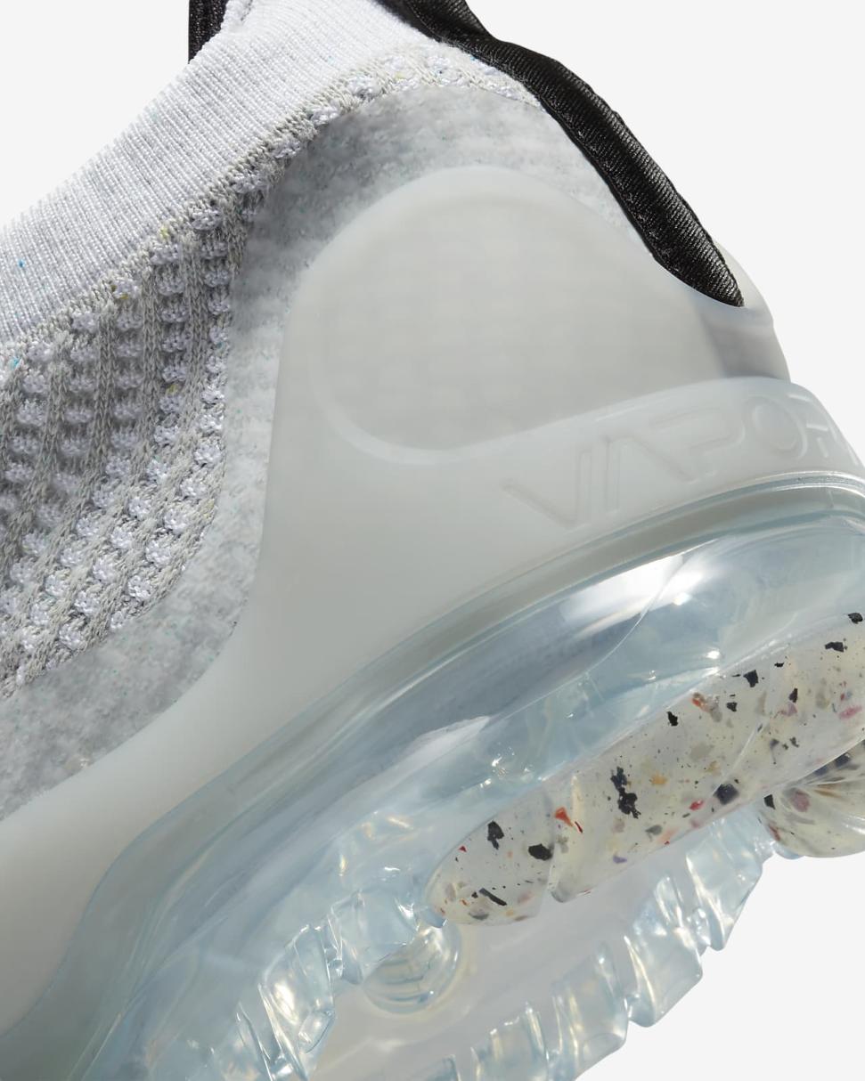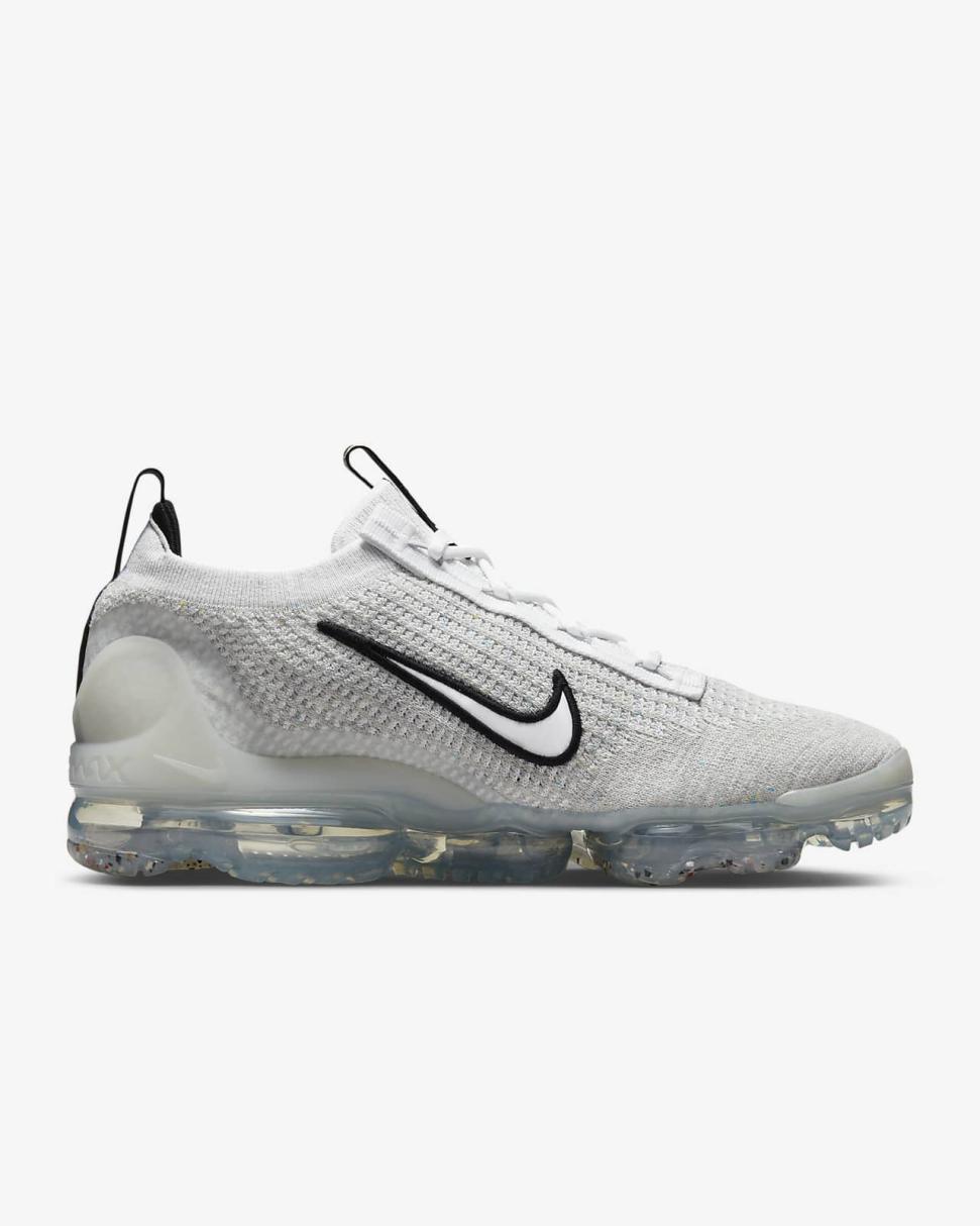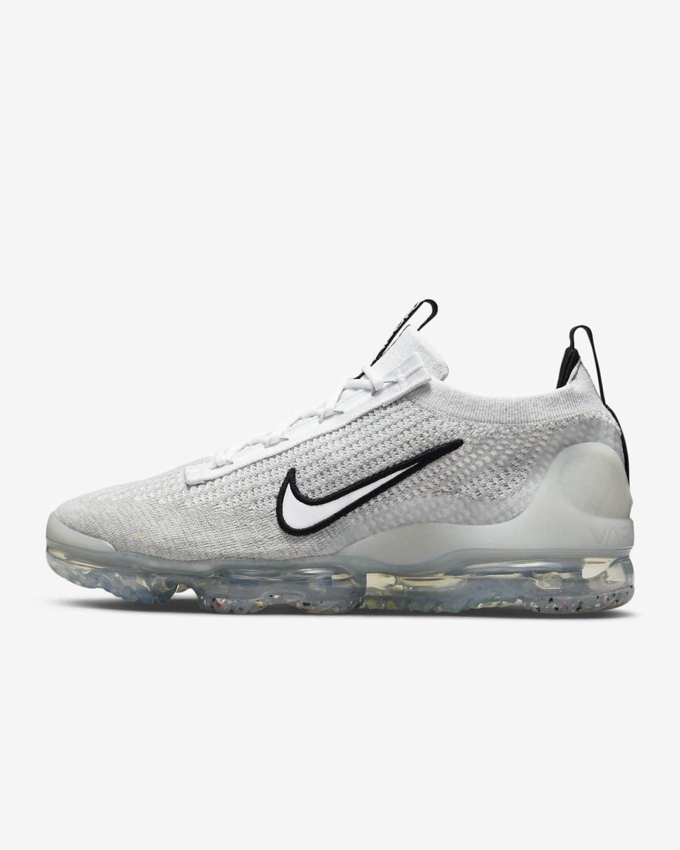Made from at least 20% recycled materials by weight, the Nike Air VaporMax 2021 FK is airy and easy to wear with superstretchy Flyknit fabric (plus a soft collar that sculpts your ankle). The stitched-on Swoosh and recycled TPU heel clip add a splash of intrigue as you float down the streets on incredibly soft VaporMax cushioning.