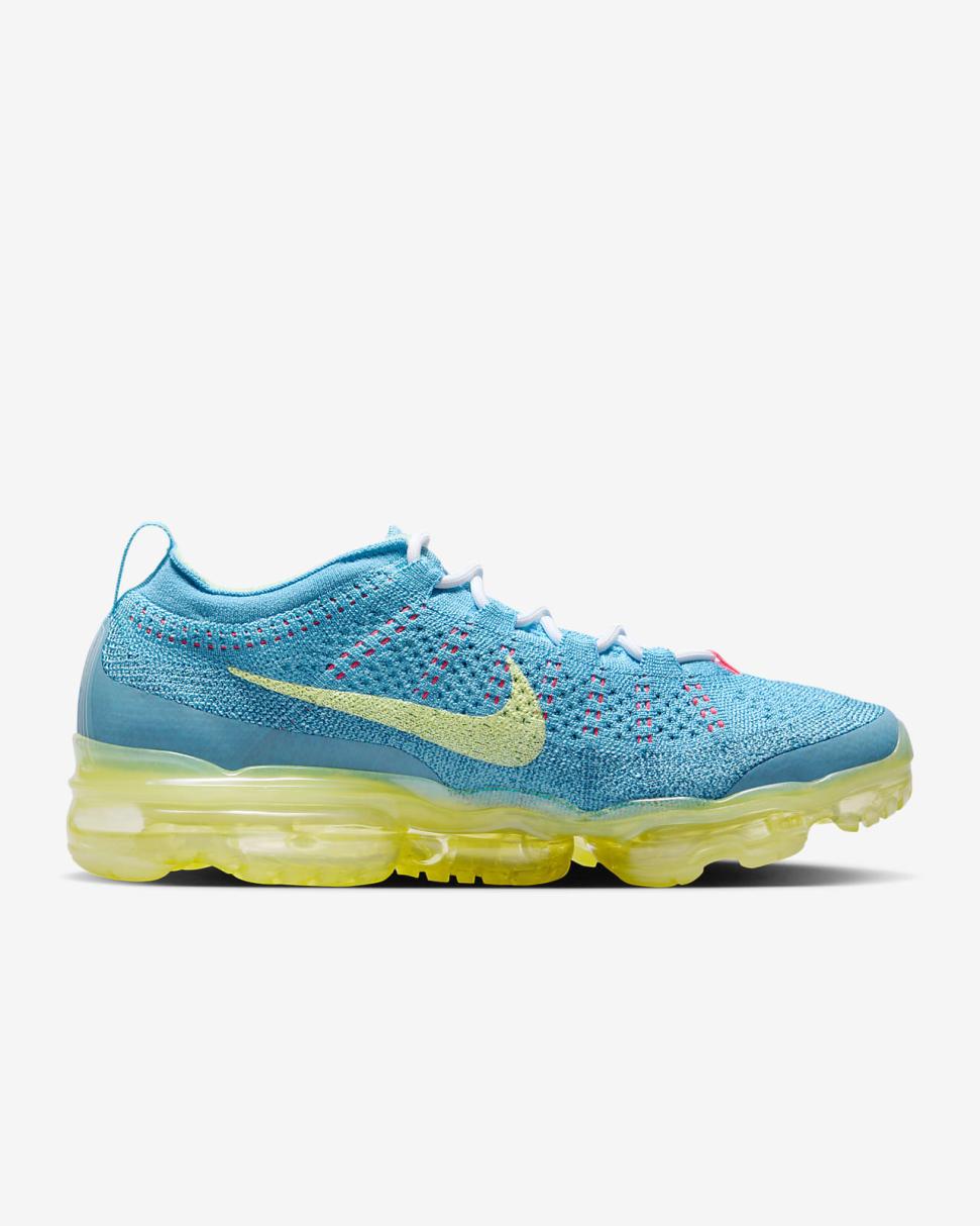 Have you ever walked on Air? Step into the Air VaporMax 2023 to see how it's done. The innovative tech is revealed through the perforated sockliner (pull it out to see more). The stretchy Flyknit upper is made with at least 20% recycled content by weight.