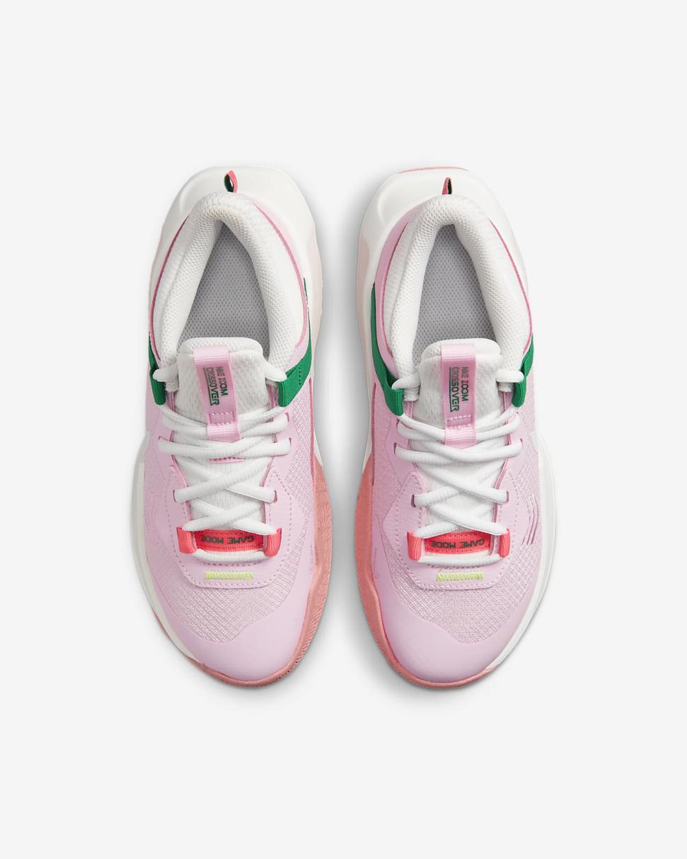 Our first basketball shoe inspired by ladies of the league is made for ALL young hoopers to dominate their game. The Nike Air Zoom Crossover, named after a favorite move, brings an extra bounce to your step with Zoom Air while you fly sky high on the court.