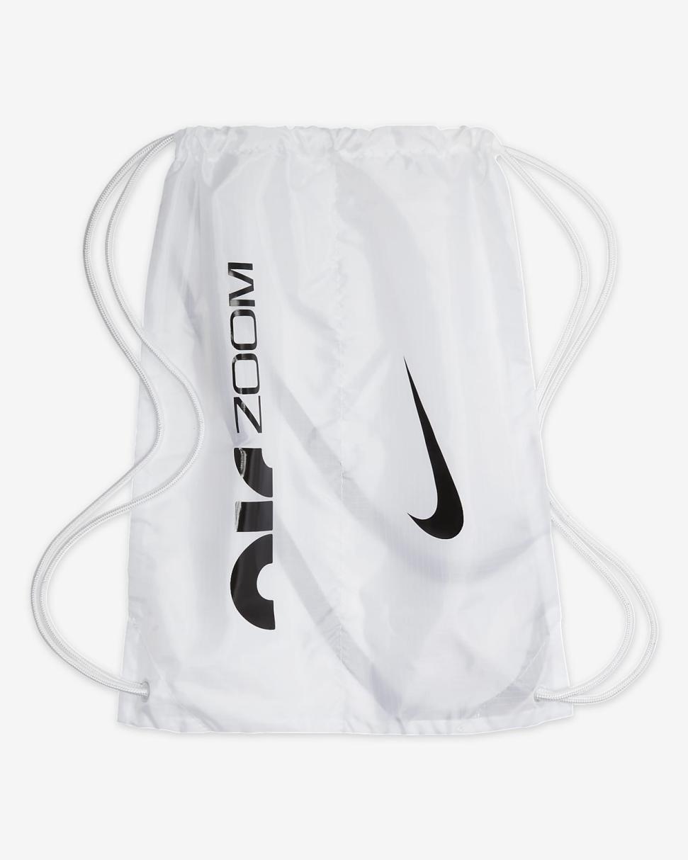 A Zoom air unit at the forefoot gives you a light, responsive bounce when your foot connects to the track. Its wider design combines with a carbon-fiber plate and underfoot flex grooves for a propulsive and stable feel as you take off down the runway.