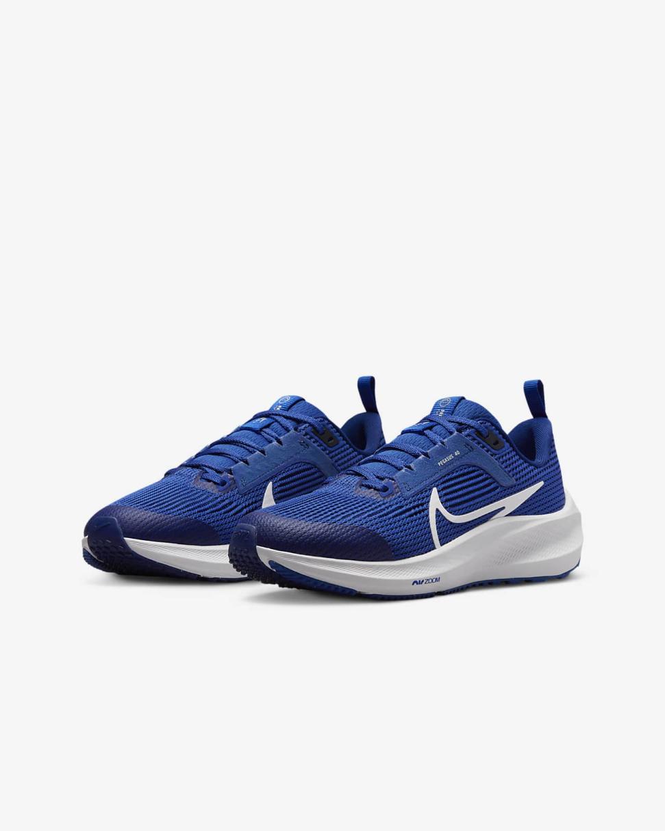 40 years. Generations of running. The Pegasus 40 reps the past and future of Nike running. Whether you're gearing up for a school track meet, track practice or fun runs (like your gym class mile), this shoe is for runners of all levels. They're breathable so your feet stay cool with every lap. Zoom Air and bouncy foam team up for the cushioning you need to feel comfortable with every stride. It's time to fly!