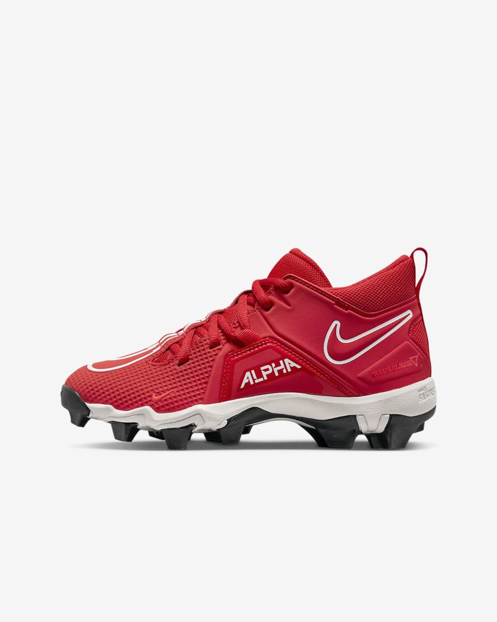 The Nike Alpha Menace 3 Shark has an aggressive rubber sole designed to grip the ground while flexing with your foot so you can unleash your speed during practice or play. It updates the previous version with overlays at the midfoot to give you secure support when you juke, spin and cut your way down the field.