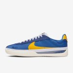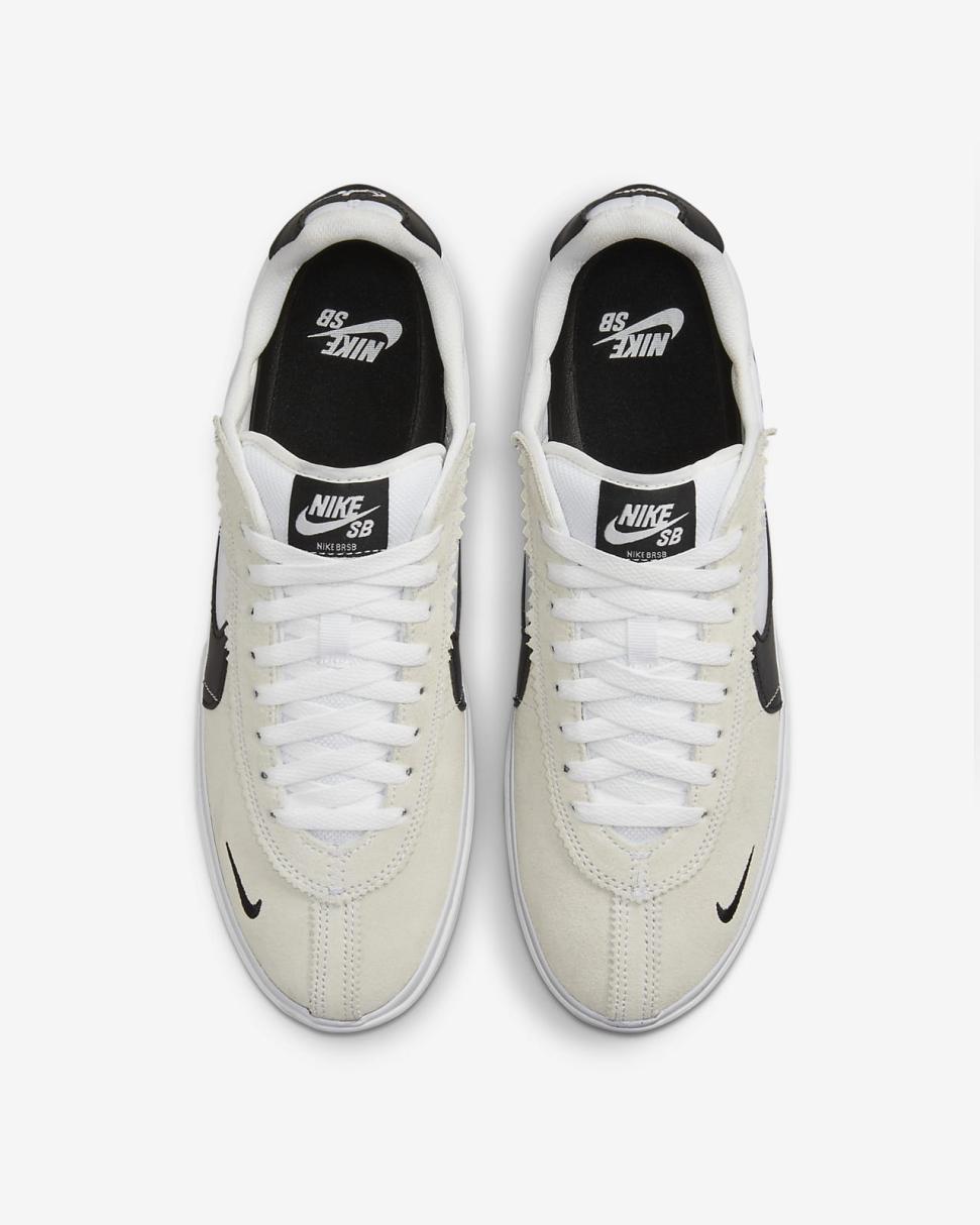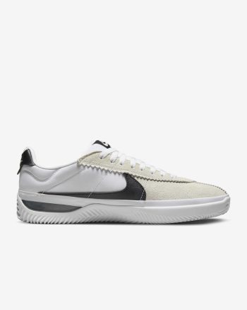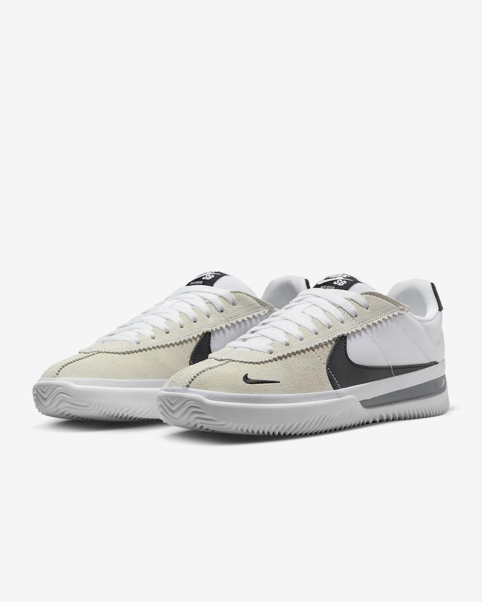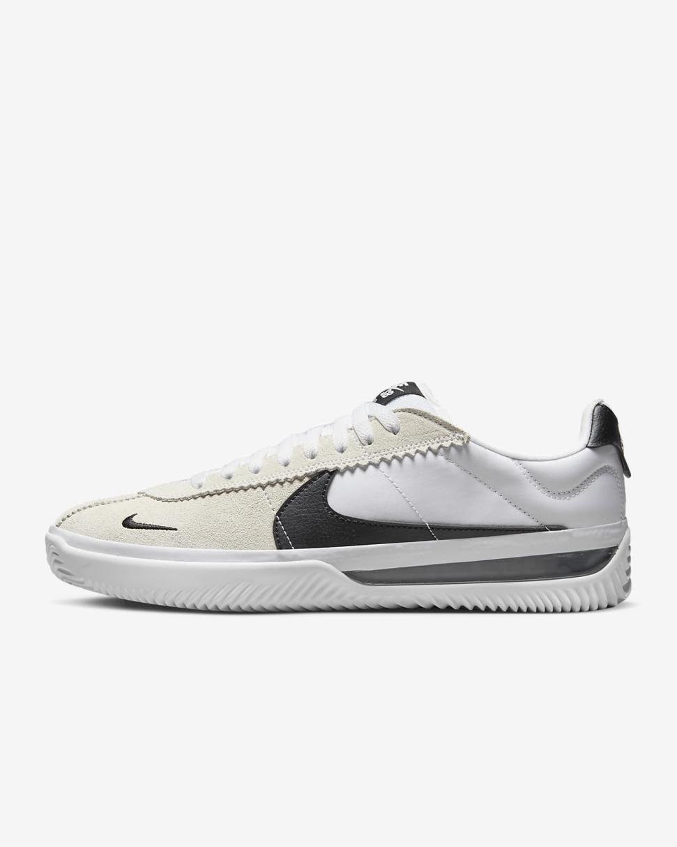 A familiar favorite is reborn in the Nike BRSB. Almost every detail, from the color blocking to the sawtooth pattern on the sole, was inspired by the original Nike Cortez. But, because this shoe is built for skate, we added extras where they're needed—like the rubber from the sole that wraps up and over the heel and toe for durability. It also wraps the sides, adding an extra layer to high-use areas, like the ollie zone.
