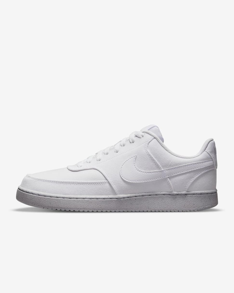 In love with the classic look of '80s basketball but have a thing for living simply? Meet the Nike Court Vision Low Next Nature. We gave it a redesigned the canvas upper with 100% recycled material, with stitched overlays inspired by the hook-shot look of old-school b-ball. The speckles in the rubber outsole? Those are made from Nike Grind, which is recycled waste (i.e., the scraps) from the footwear manufacturing process. This product is made with at least 20% recycled content by total weight of product.