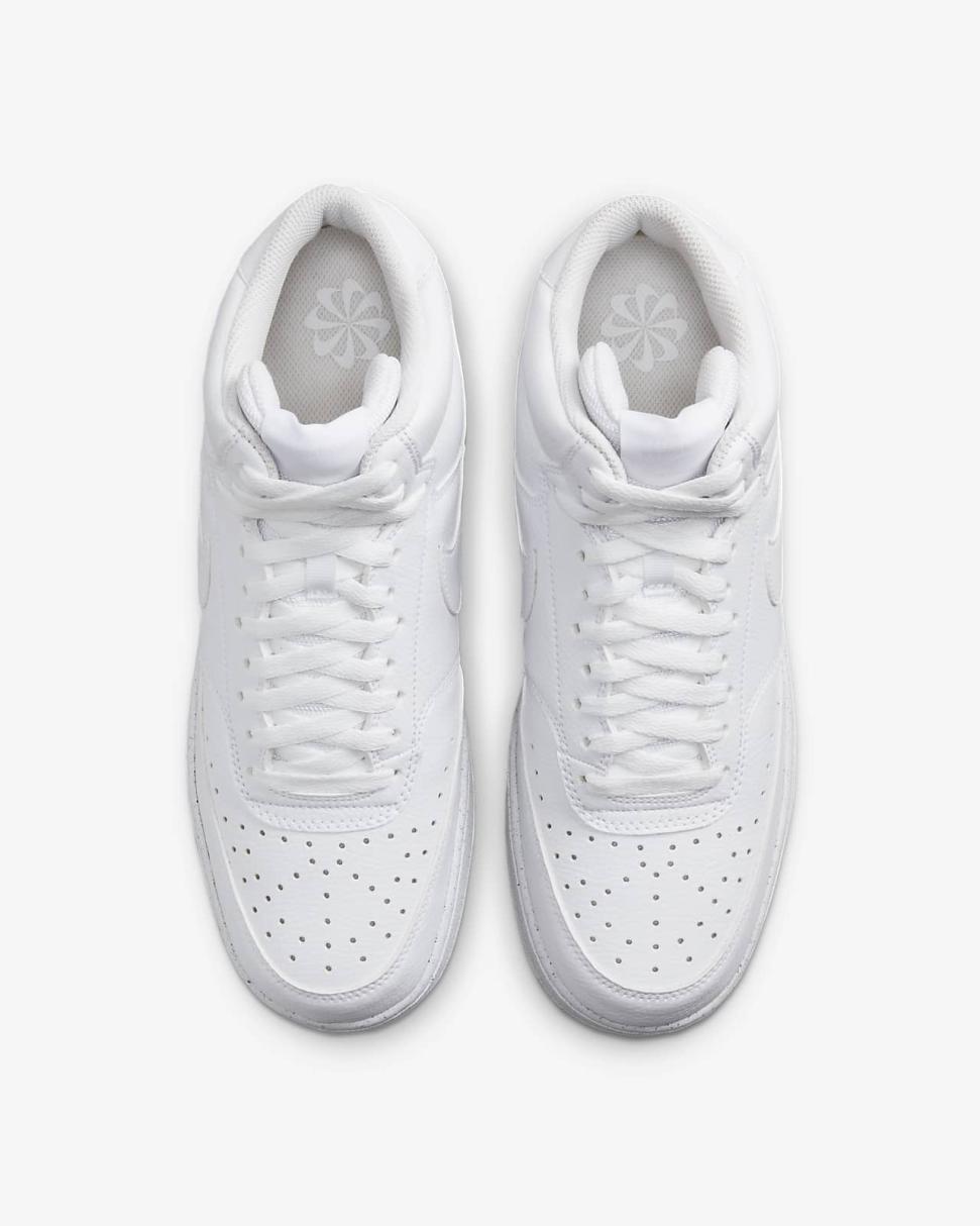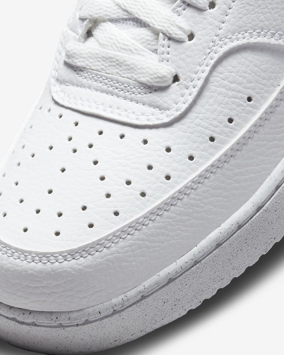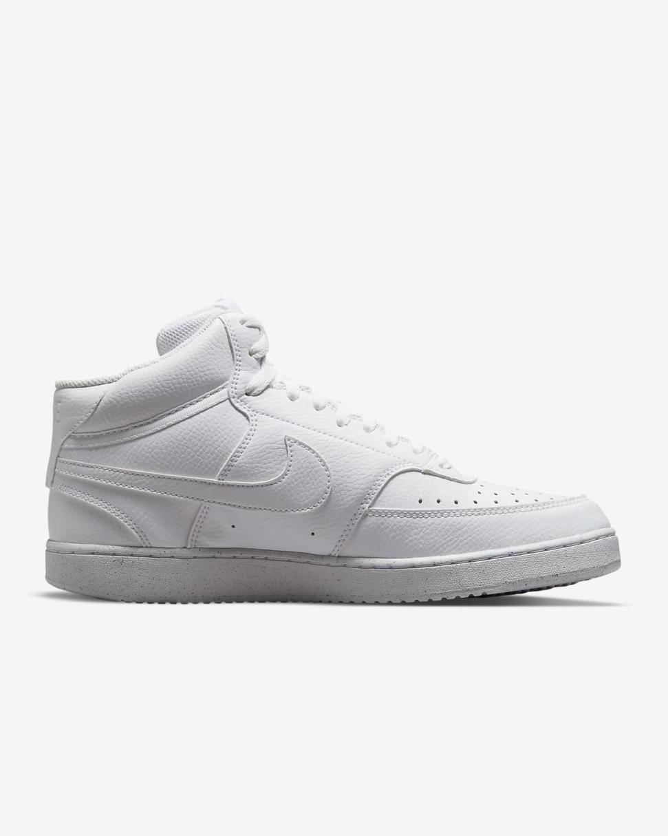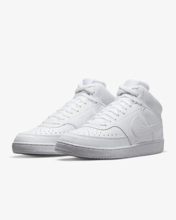 In love with the classic look of '80s basketball but have a thing for the fast-paced culture of today's game? Meet the Nike Court Vision Mid. A classic remixed with at least 20% recycled materials by weight. We replaced leather with recycled and synthetic materials that keeps the soul of the original style. Its crisp upper and stitched overlays stays true to its origins. The plush collar keeps it sleek and comfortable for your world.