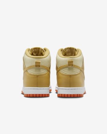 More iconic than amber waves of grain, this Dunk High redefines timeless. Canvas underlays with natural variation nod to classic workwear, while textured leather overlays in a warm hue add polish to your look. A punctuation of orange underfoot energizes the earthy upper—and that plush high-top collar? It brings sofa-night softness anywhere you go. They're essential for a reason.